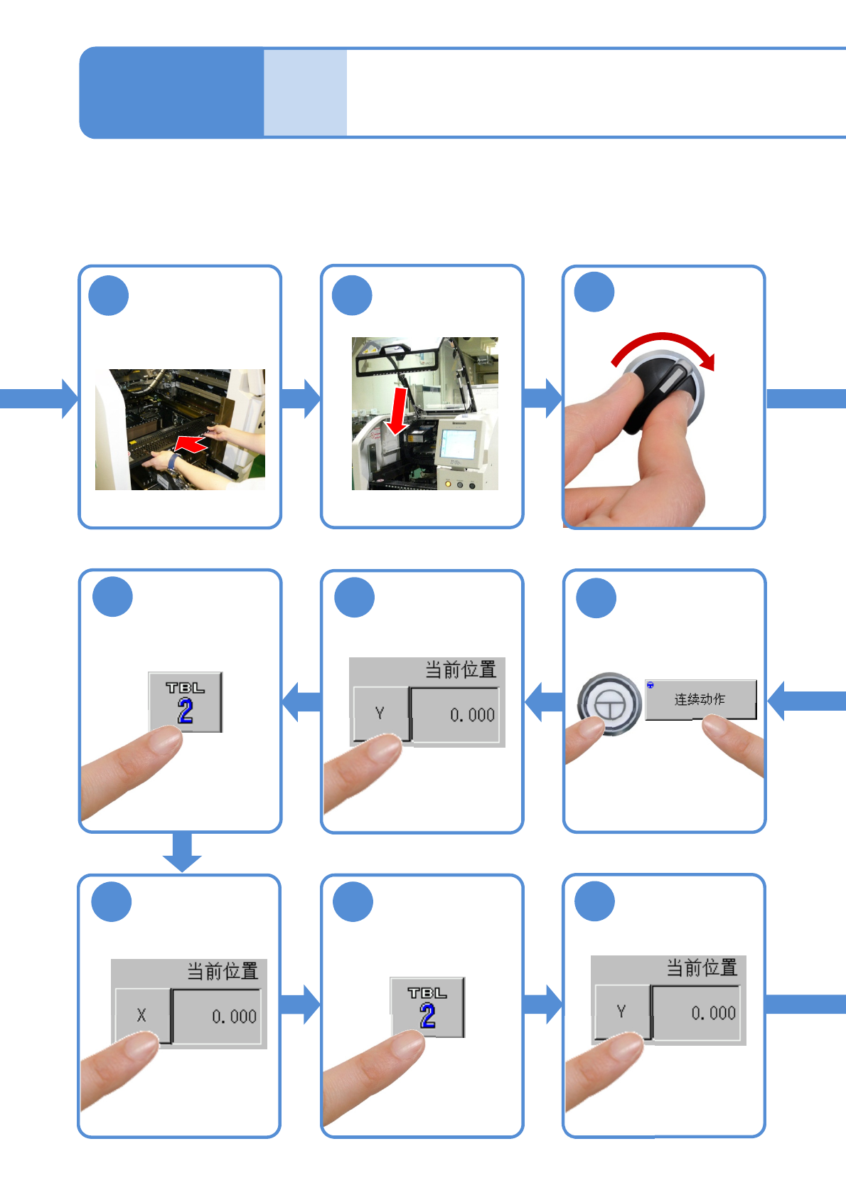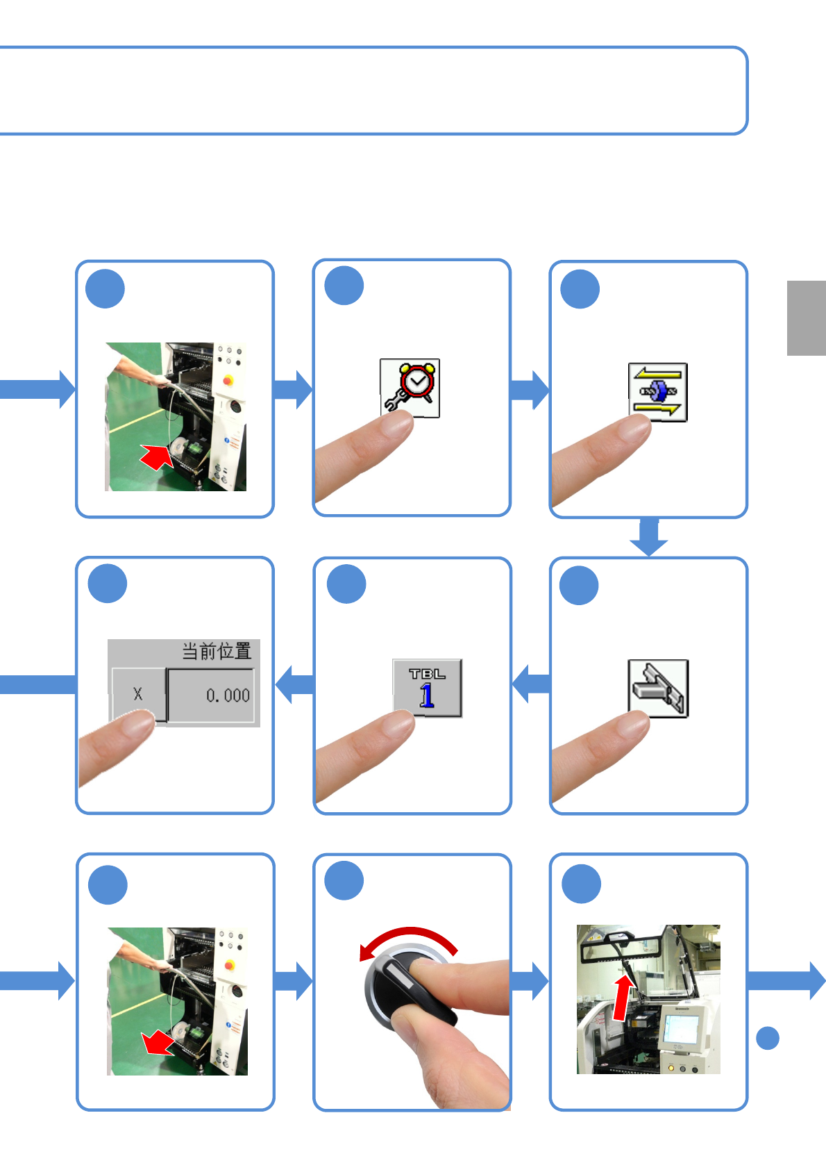 NPM-D3 EJM6DC-MB-06M-02 6-3 -6 顺序 选择工作台 每 5 6 0 小 时 保 养 定 期 检 查 选择 X 轴 卸下交换台车 ( → P.3-2) 15 16 17 18 19 20 OFF SERVO 28 29 ( 前侧、后侧 ) 27 30 安装交换台车 ( → P.3-2)