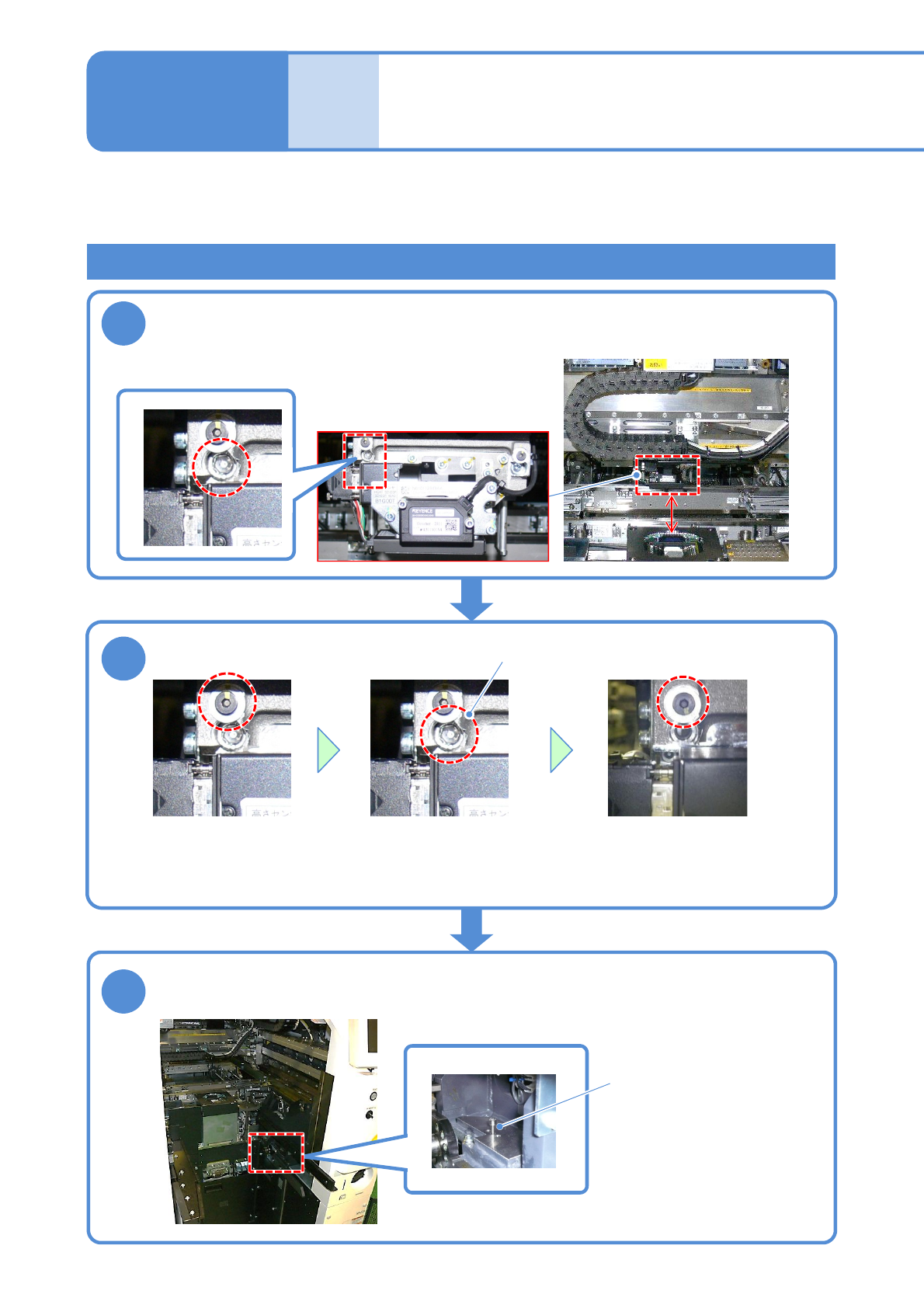 ●需要进行从保管位置拆卸下固定螺栓后恢复到原来位置的作业。拆卸下旧型贴装头后,请按照上一