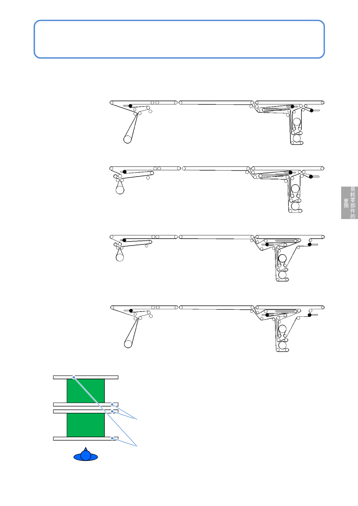 ●在每个轨道的规格下的传送皮带的配置,记载在下一页上。在进行皮带的更换作业时,请复制或剪