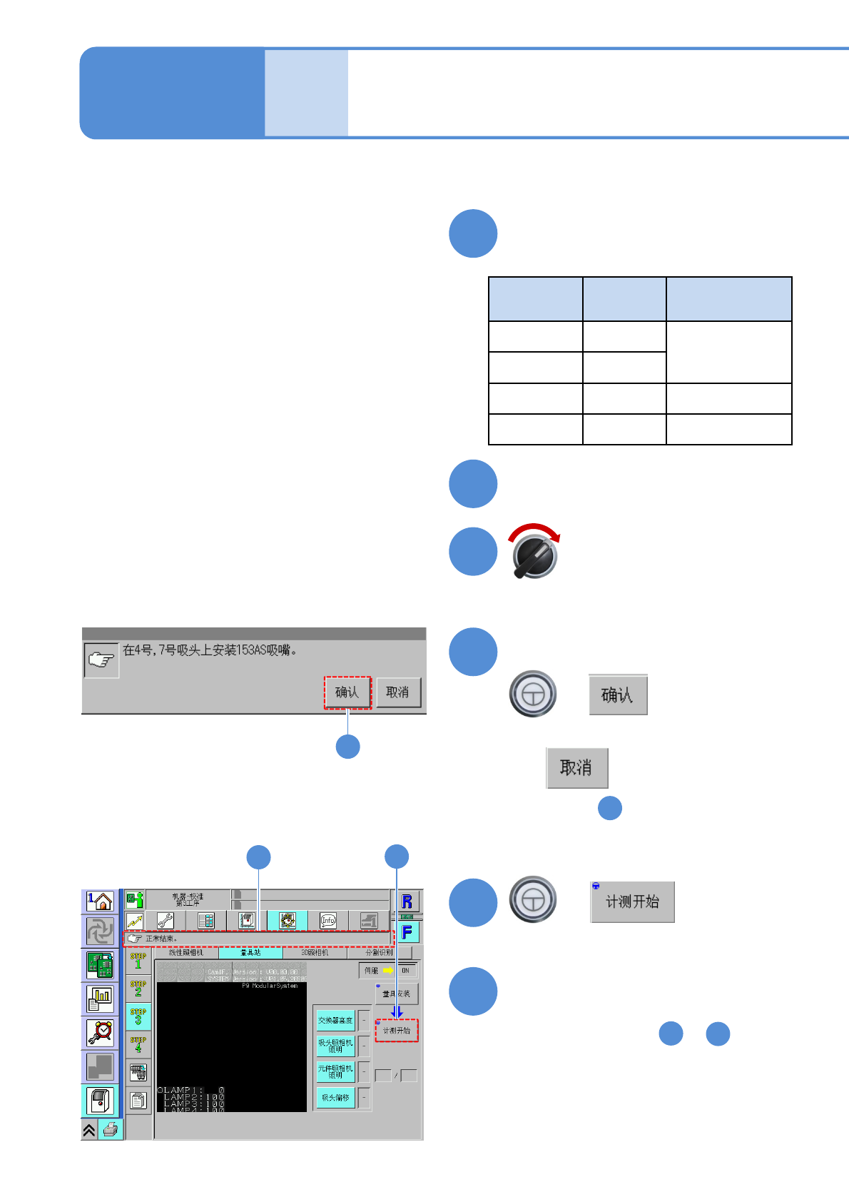 NPM-D3 EJM6DC-MB-12M-02 12-10 -5 治具站 3 维修保养篇 12-10 + 确认提示 ■取消时 ( 仍然是 的画面 ) 2 伺服开关置于 ON 确认是否已正常结束 ●在其他工作台,重复 ~ 的操作。 1 21 23 20 22 23 23 22 关闭安全盖 安装吸嘴 ●所使用的吸嘴 吸嘴 贴装头数量 吸嘴 位置 吸嘴 种类 16 5 、 9 号 153AS 12 4 、 7 号 8 3 、 6 号 184 …