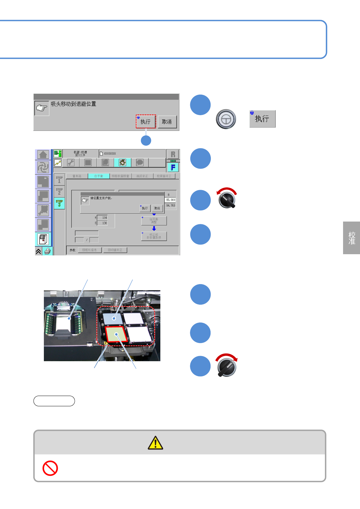 NPM-D3 EJM6DC-MB-12M-02 12-12 -3 12 确认提示 + 14 打开安全盖 15 从校正治具的左前侧卸下用户主量 具板 16 18 17 关闭安全盖 19 19 确认提示 13 确认提示 + ( 把点胶头移动到退避位置 ) 12 13 伺服开关置于 OFF 伺服开关置于 ON 维修保养篇 12-12 白平衡 2 (2D 检查头 )