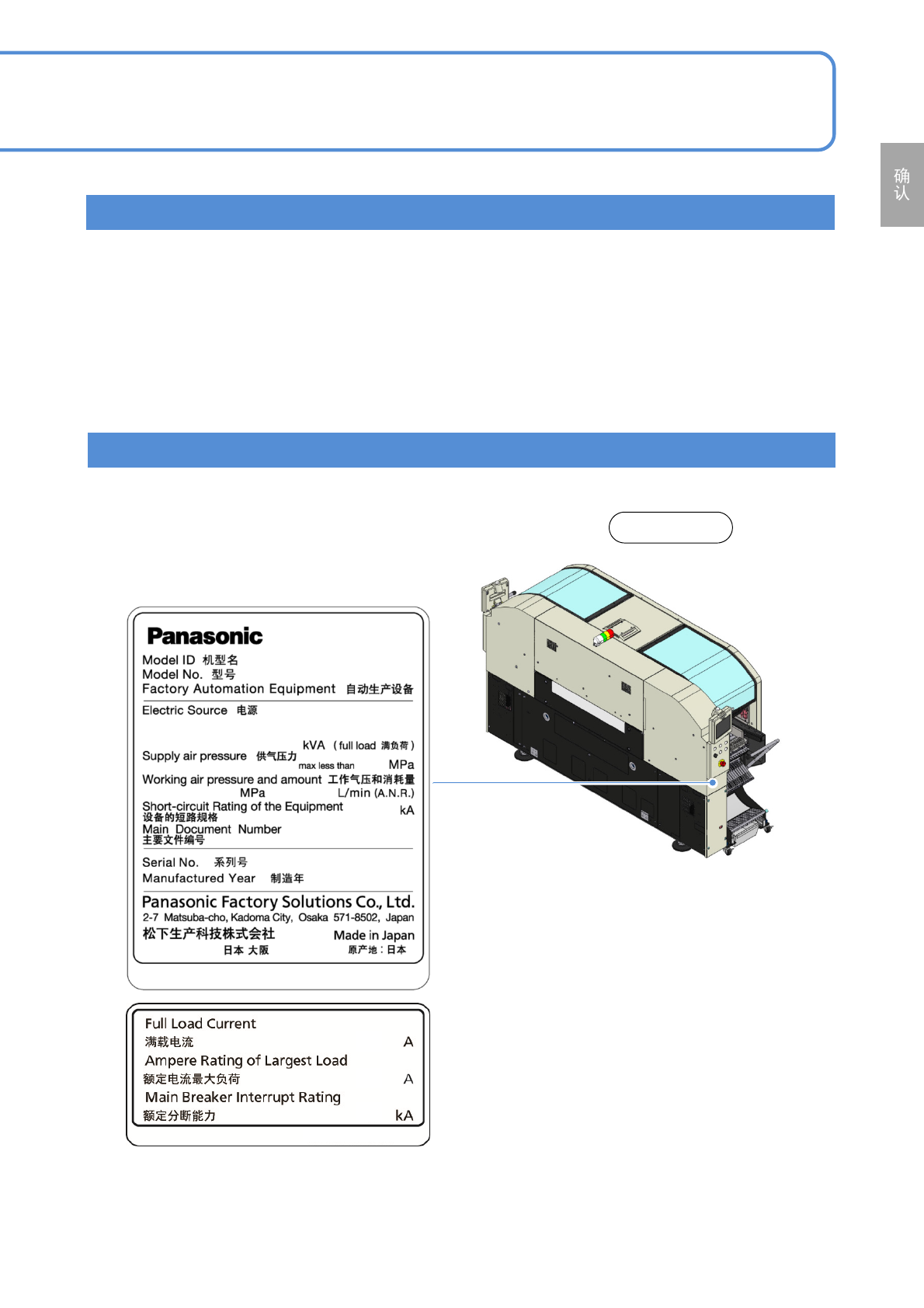 产品名称 (Model ID)、表示序列编号 (Serial No.) 的产品标牌,粘贴在下图位置。