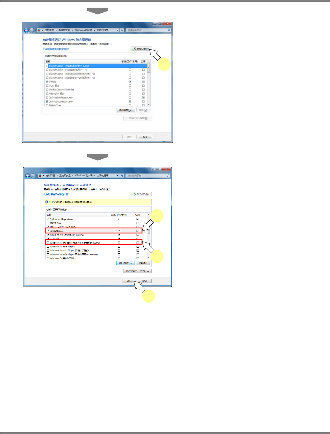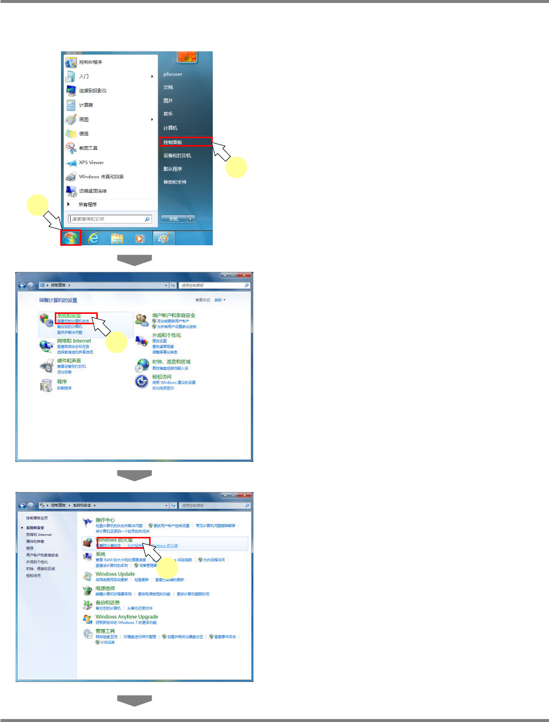 NPM X / NPM / AM / VM LNB 2.7 品质信息数据库的安装 Page 2-76 EJM5DC-MB-02L-16 2.7.3 Windows 防火墙的设定 A) OS 是 Windows 7 的情况时 1 点击 ‘ 开始 ’ 后,再点击 [ 控制面板 ] 。 将显示控制面板画面。 2 点击 [ 系统和安全 ] 。 3 点击 [ 允许程序通过 Windows 防火墙 ] 。 2-5108 2 2-5109 3 2…