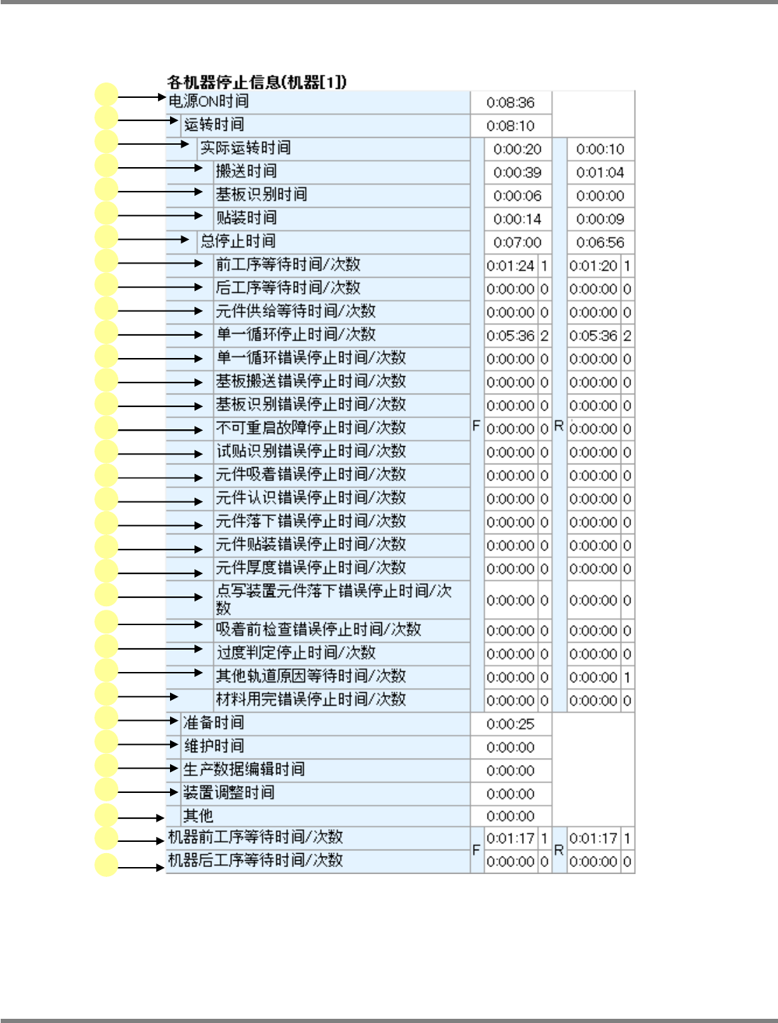 各机器停止信息
