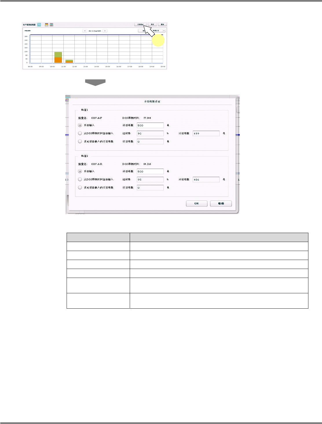 显示每个轨道的计划张数设定。