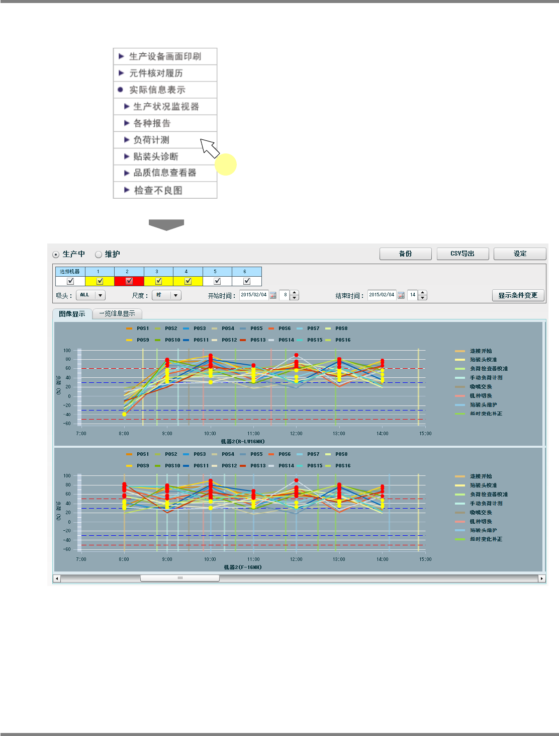 显示内容包含供料器、吸嘴支架、吸嘴交换器、部品名称。