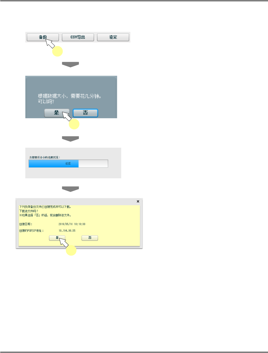 按钮,将汇总负荷计测信息的关连文件后压缩,然后下载到用户指定的保护场所。