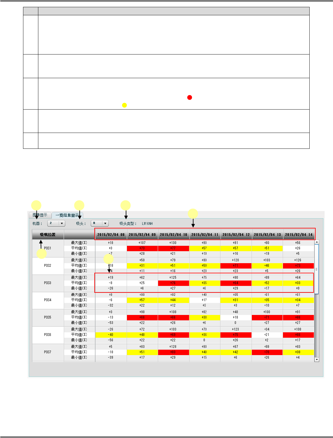 当计测值的平均值超出了警告上限限时,背景颜色为黄色。