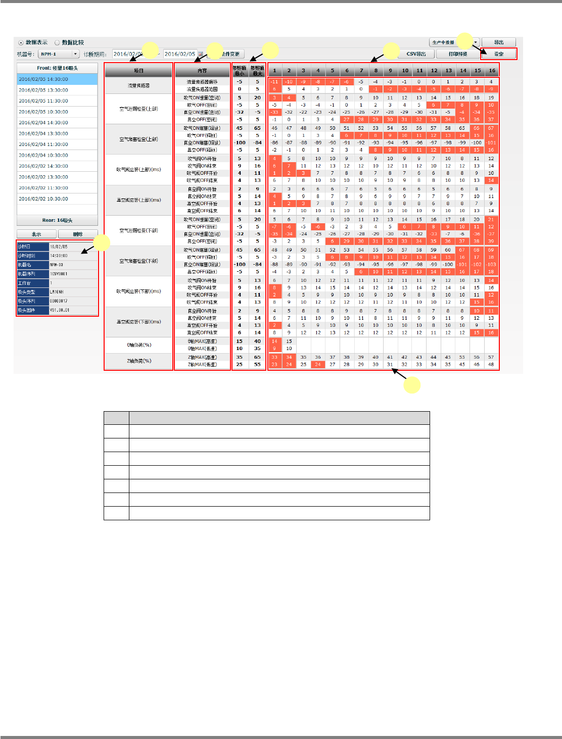 NPM X / NPM / AM / VM LNB 3.5 实际信息表示 Page 3-88 EJM5DC-MB-03L-17 结果显示 (1 个贴装头 ) 说明 a 检查项目。 b 检查内容的详细。 c 计测结果的范围。 d 贴装头的吸嘴 No. 。 e 计测结果。当结果位于 [ 参照值 ] 范围外时,将以橘黄色显示。 f 可变更 [ 参照值 ] 的范围。 g 计测的详细信息。 a b c d f g e 3-5052 a b c…