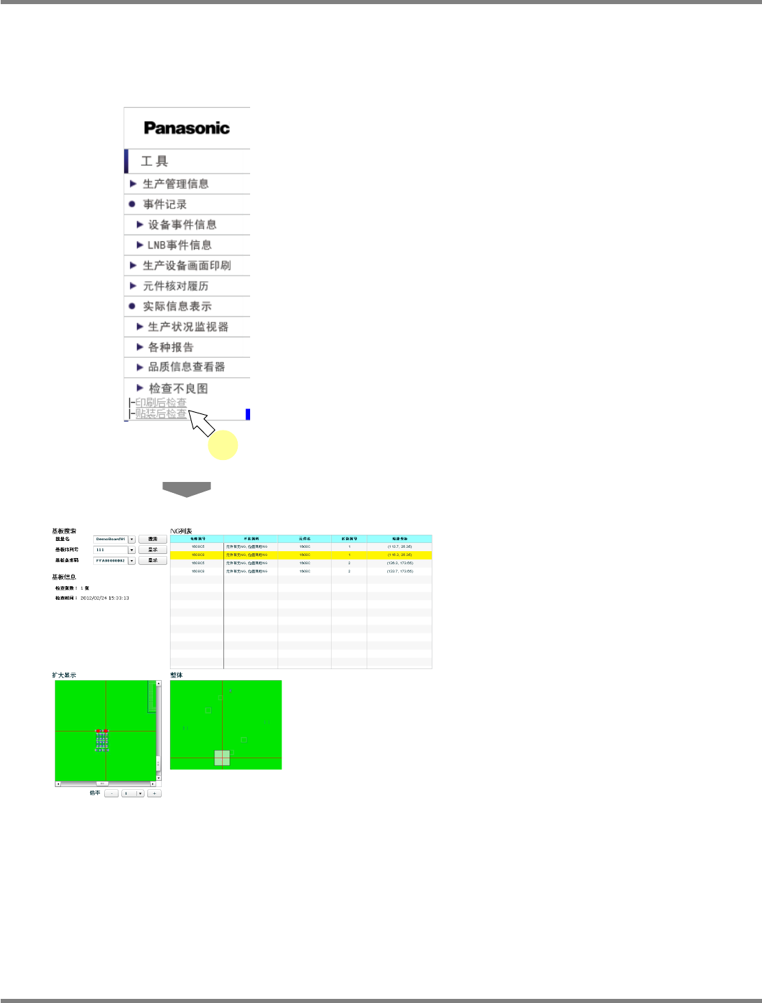 将显示贴装后检查不良图。关于显示内容、操