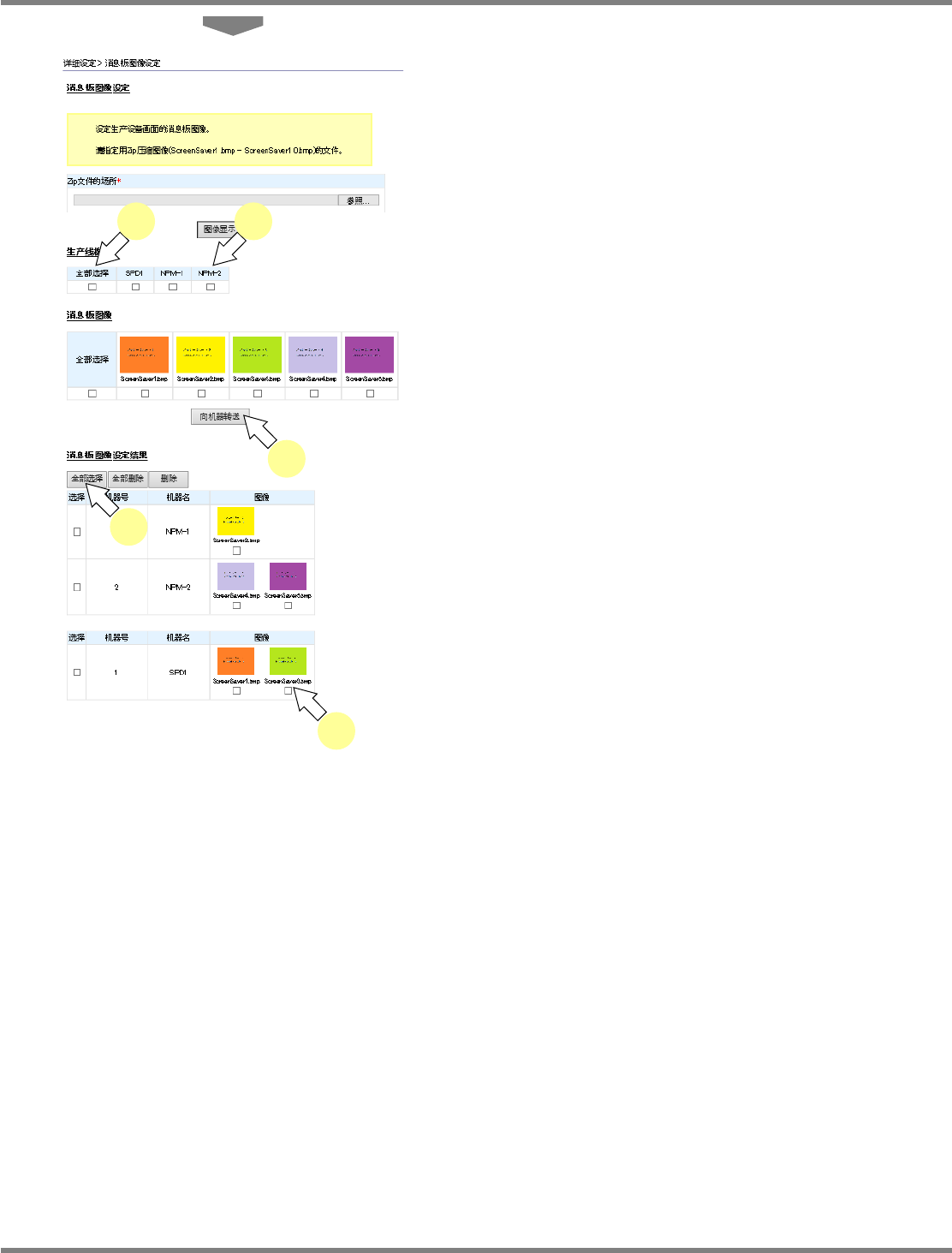 NPM X / NPM / AM / VM LNB 4.4 详细设定 EJM5DC-MB-04L-18 Page 4-45 4.4.14 消息板图像设定 在这里,进行消息板图像的设定。 1 从菜单中选择 ‘ 详细设定 ’ 的 ‘ 消息板 图像设定 ’ 。 将显示 < 消息板图像设定 > 画面。 2 点击 [ 浏览 ] ,以 zip 形式的文件指定设 定为消息板的图像。 将会打开指定文件场所的对话框,请 指定 zip …