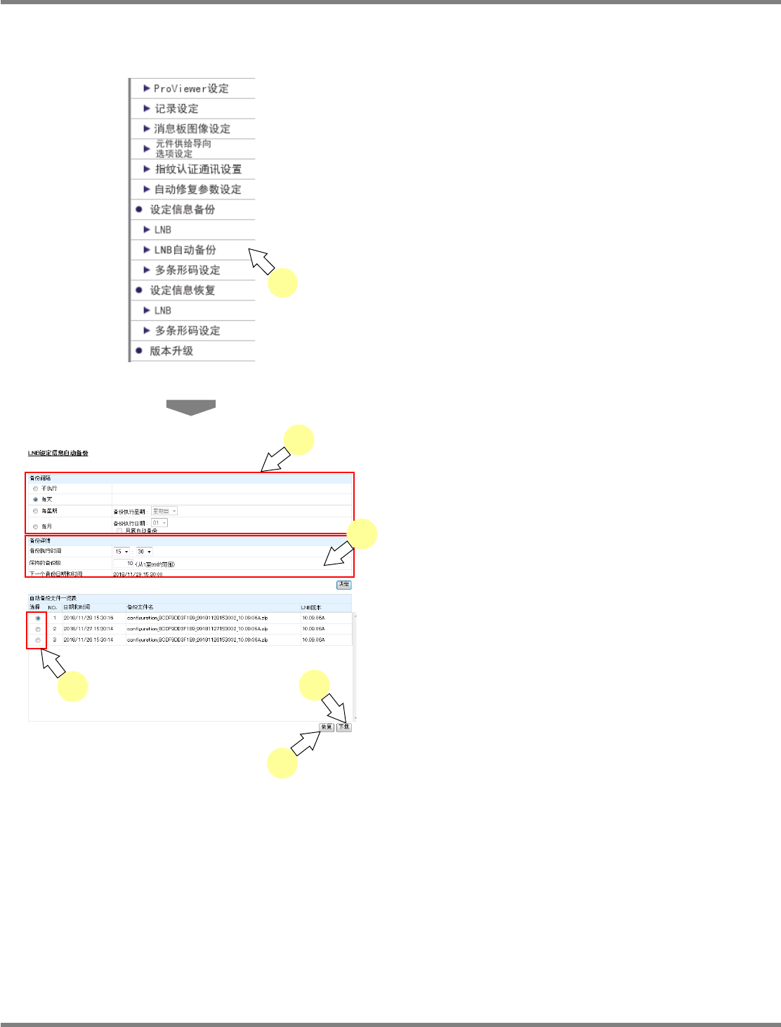 针对在这里备份的设定信息,可通过