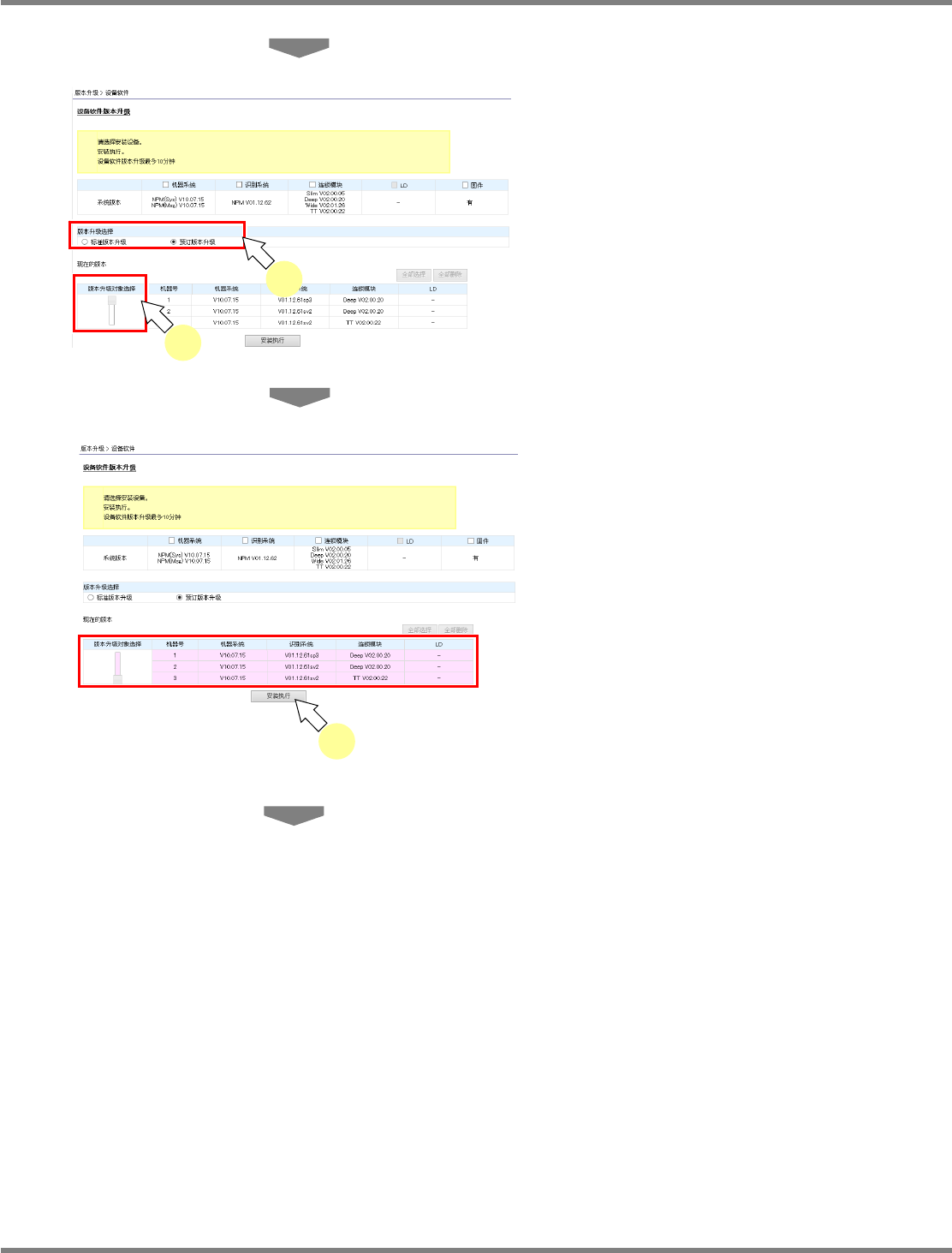 当安装示意图和设备不一致时,不能执行版本升级