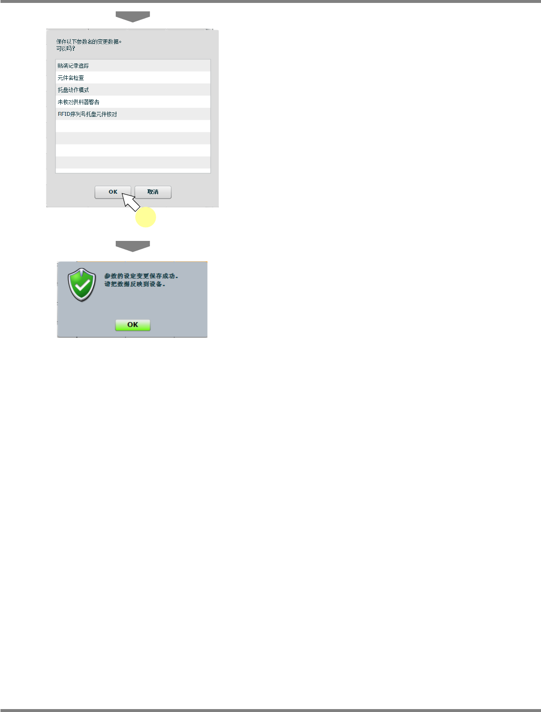 将针对参数的设定变更,显示是否需要保存的