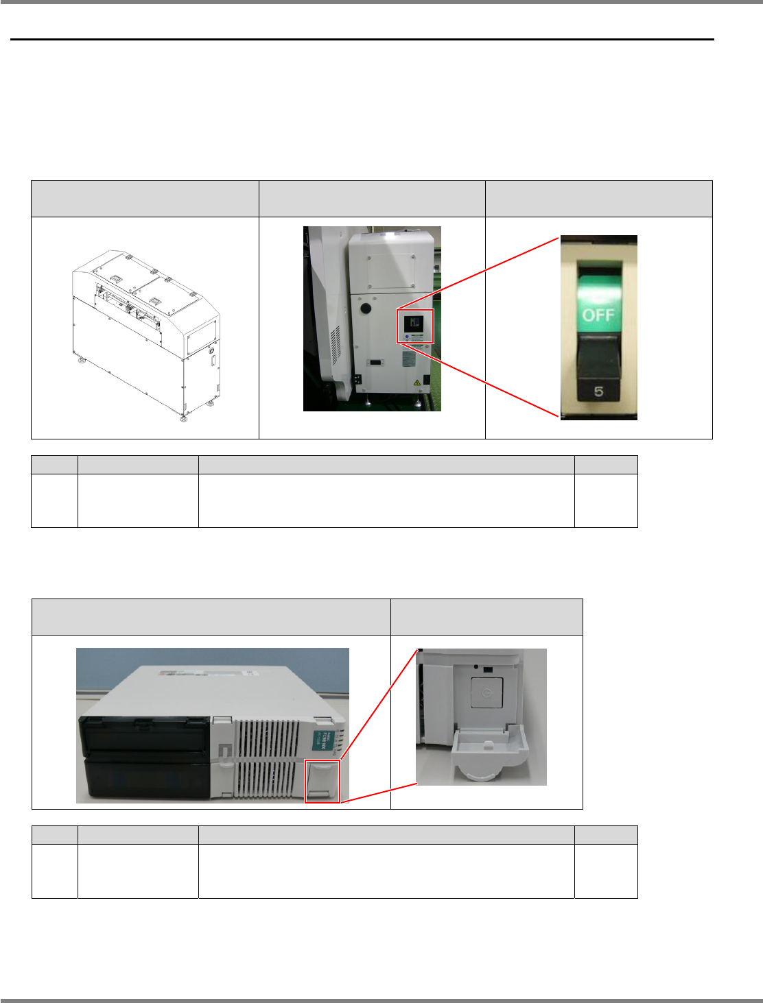 生产开始时和结束时的主电源开关操作方法