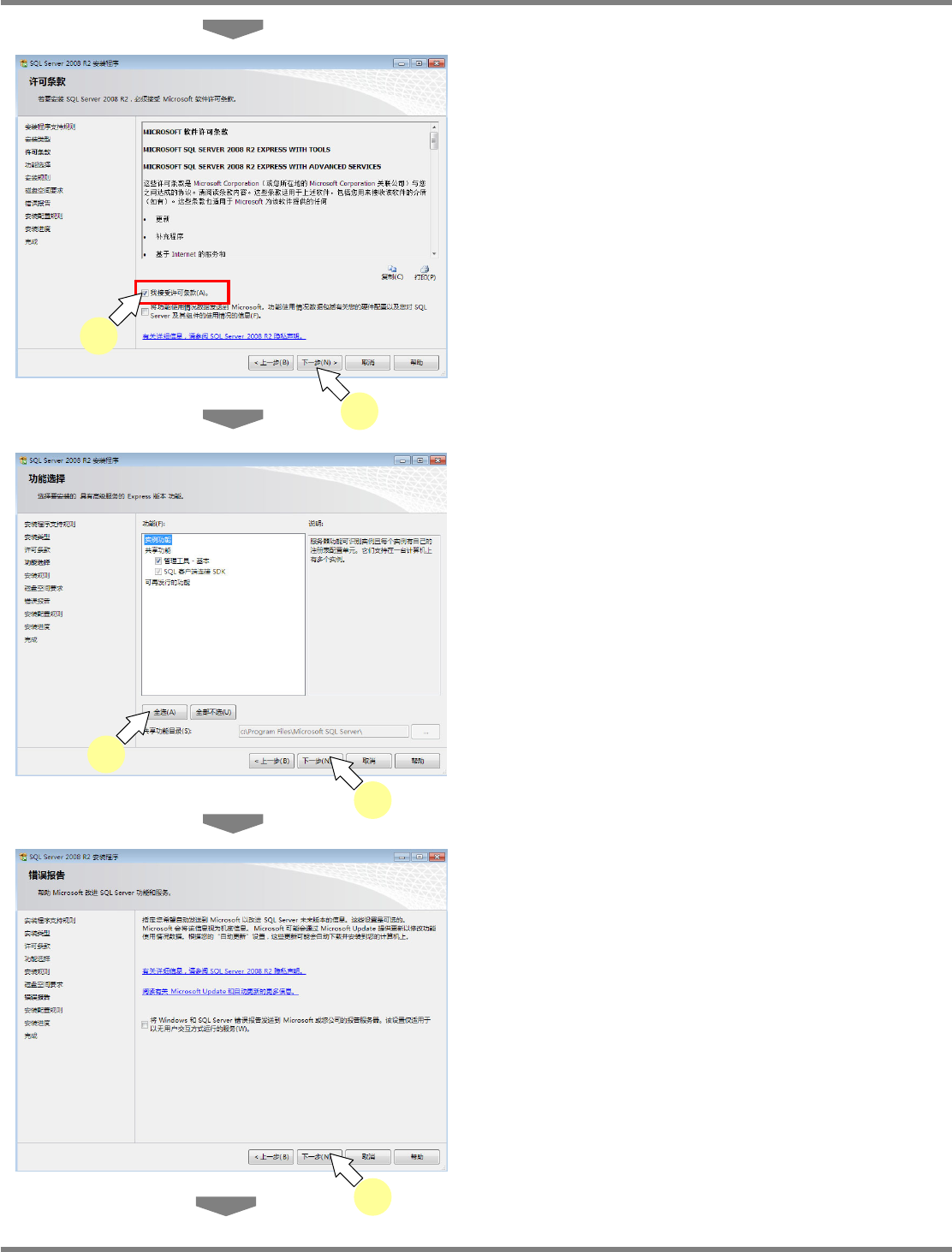 NPM X / NPM / AM / VM LNB 2.7 品质信息数据库的安装 Page 2-54 EJM5DC-MB-02L-16 4 选择 [ 我接受许可条款。 ] 后, 点击 [ 下一 步 ] 。 5 选择 [ 全选 ] 后,点击 [ 下一步 ] 。 6 点击 [ 下一步 ] 。 显示 < 安装进度 > 画面。 2-6116 5 5 2-6115 4 4 2-6117 6