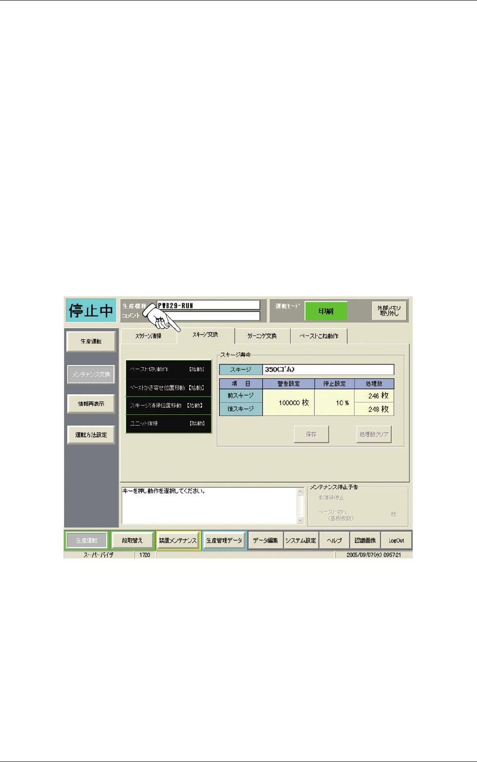 その際には、以下の手順でスキージを交換して、生産運転を再始動