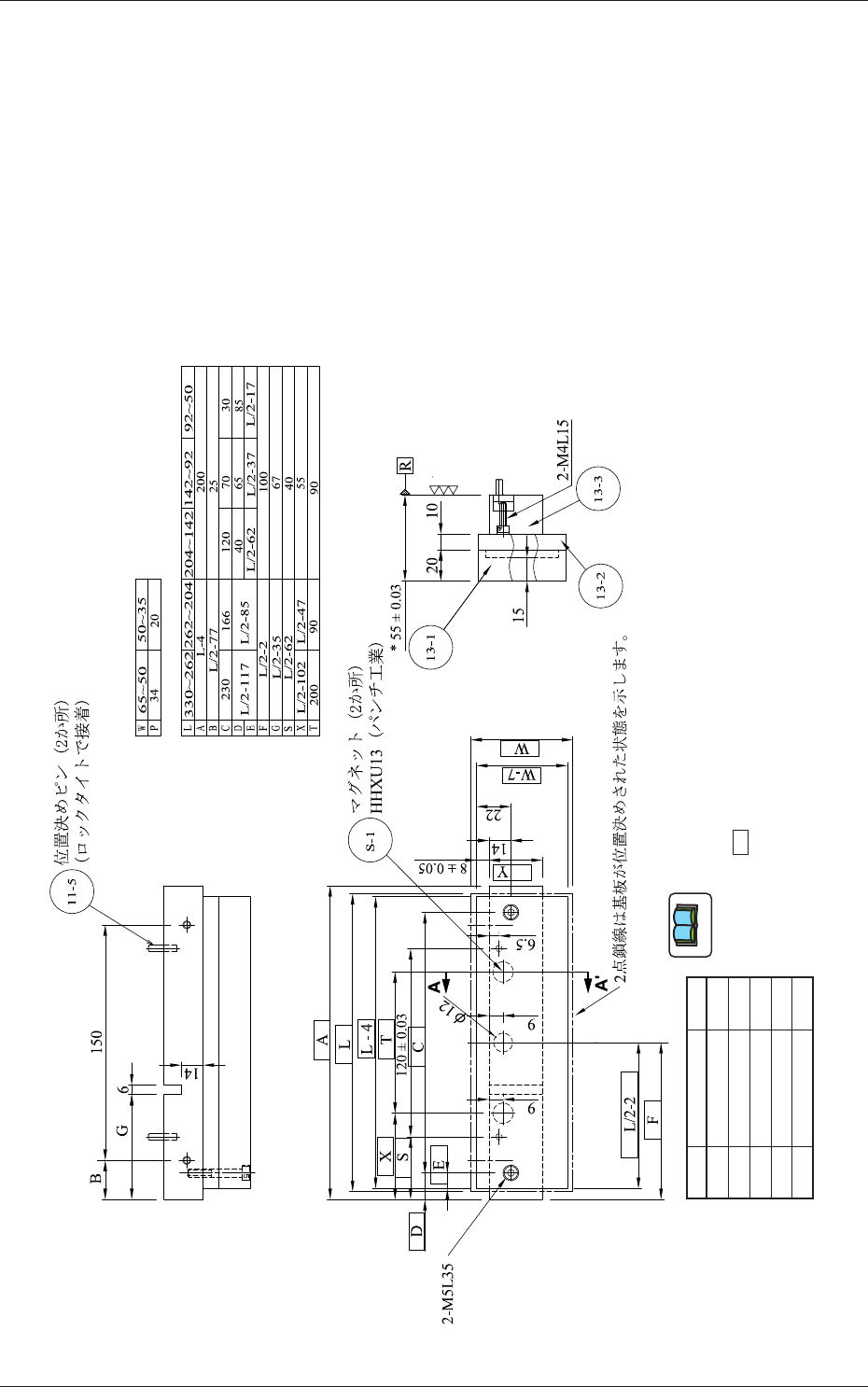 1.4.1 基板幅 W (mm) : “35<=W<=65”用の組図