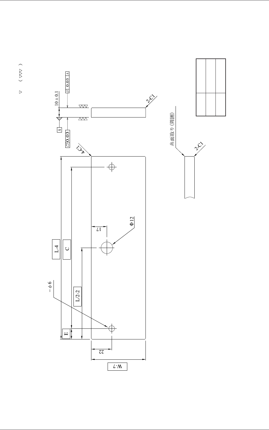 (a) 各コーナーは、面取り C1 とします。