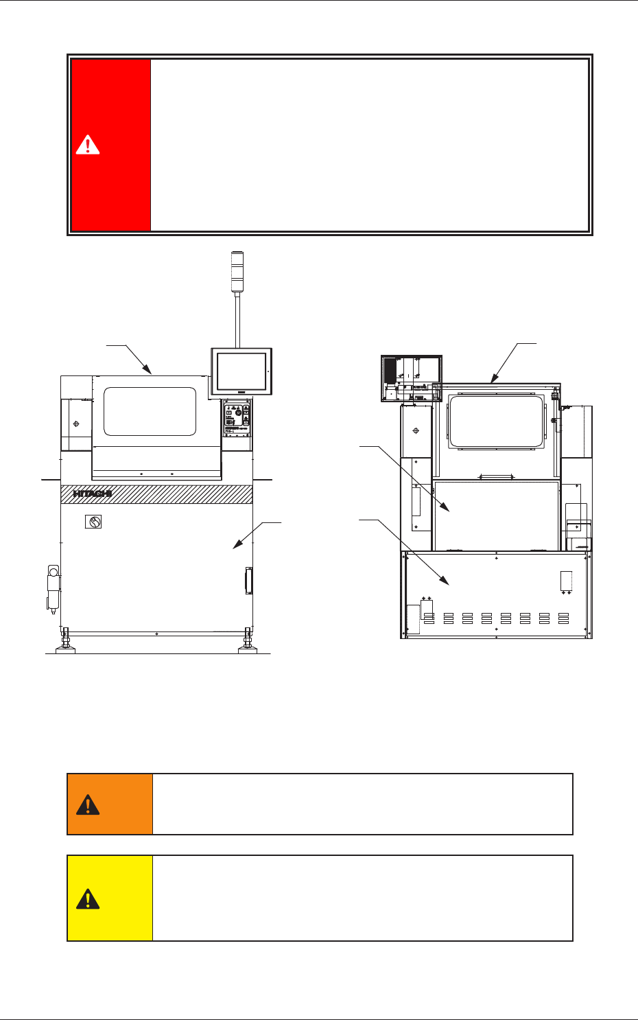 1-5 Tg1297-ID-GU 2.2 使用者保護のための機構 2.2.2 カバー部 開閉扉 開閉扉 開閉扉 安全カバー Fig. 1A8 装置前面 Fig. 1A9 装置後面 生産運転中の危険を防止するため、装置内部の動く部分に身体の一 部や衣類、物が接触しないように開閉扉が装備されています。 警告 生産運転を行うとき、および生産運転中は、危険を防止す るために、すべての開閉扉を閉めてください。 注意 開閉扉で手・指をはさみ、けがを…