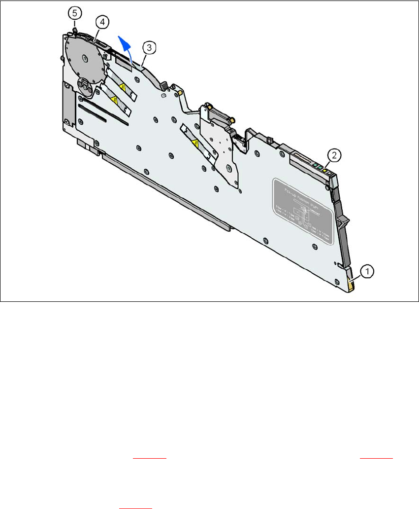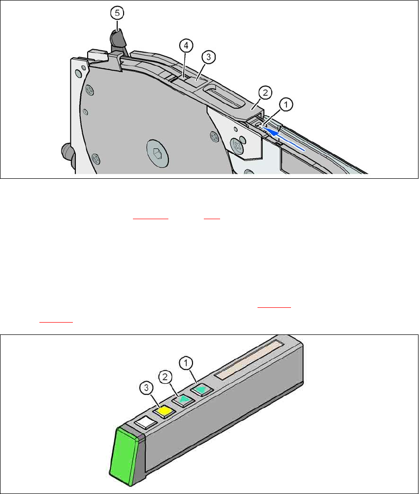 Æ 在操作员面板上,按住 FORWARD (前进)按钮 (图 5.10 - 6 中的 1),直至元件拾取区域
