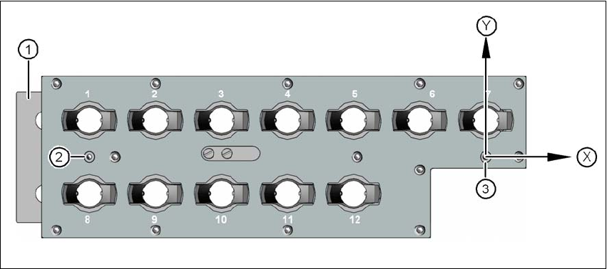 (3) 触发微型开关的弹簧销,用于吸嘴盘识别和安全回路