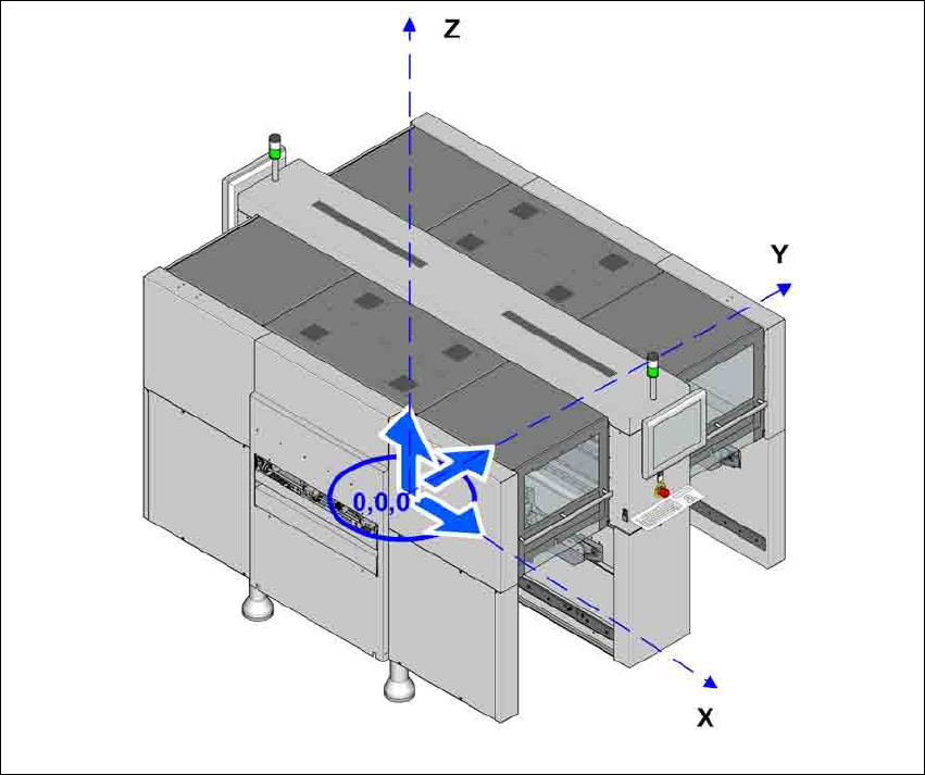 3 技术数据和组件 用户手册 SIPLACE SX4/DX4 3.3 尺寸和重量 SC.704.xx 以上软件版本 2011 年 2 月 中文版 106 3.3.5 重心 3 图 3.3 - 5 重心,单位毫米 (示例为 SX4 ) X 轴坐标 0 mm Y 轴坐标 0 mm Z 轴坐标 630 mm 这些重心的坐标对应于 PCB 传送高度为 900 mm 的贴片机。