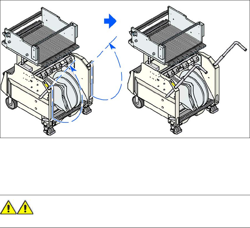 Æ 使用两个手柄向上推动光栅盘(图 5.15 - 4 中的 1,第 285 页),然后向下转动手柄(图 5.15