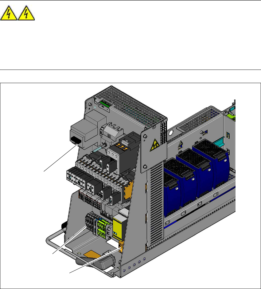 用户手册 SIPLACE SX4/DX4 2 安全操作 SC.705.xx 以上软件版本 2011 年 2 月 中文版 2.10 关闭主电源开关后贴片 机的能量状态 83 2.10.1 贴片机主电源开关关闭,但仍与主电源连接 警告 即使关闭了主电源开关,下列单 元仍带有潜在致命电压: - 主电源开关的变压器装置 L1 、 L2 和 L3 中的电源连接终端 - 维护插座 X102 , F1 自动断路器开关 处于打开位置。 - 如果主电源开…