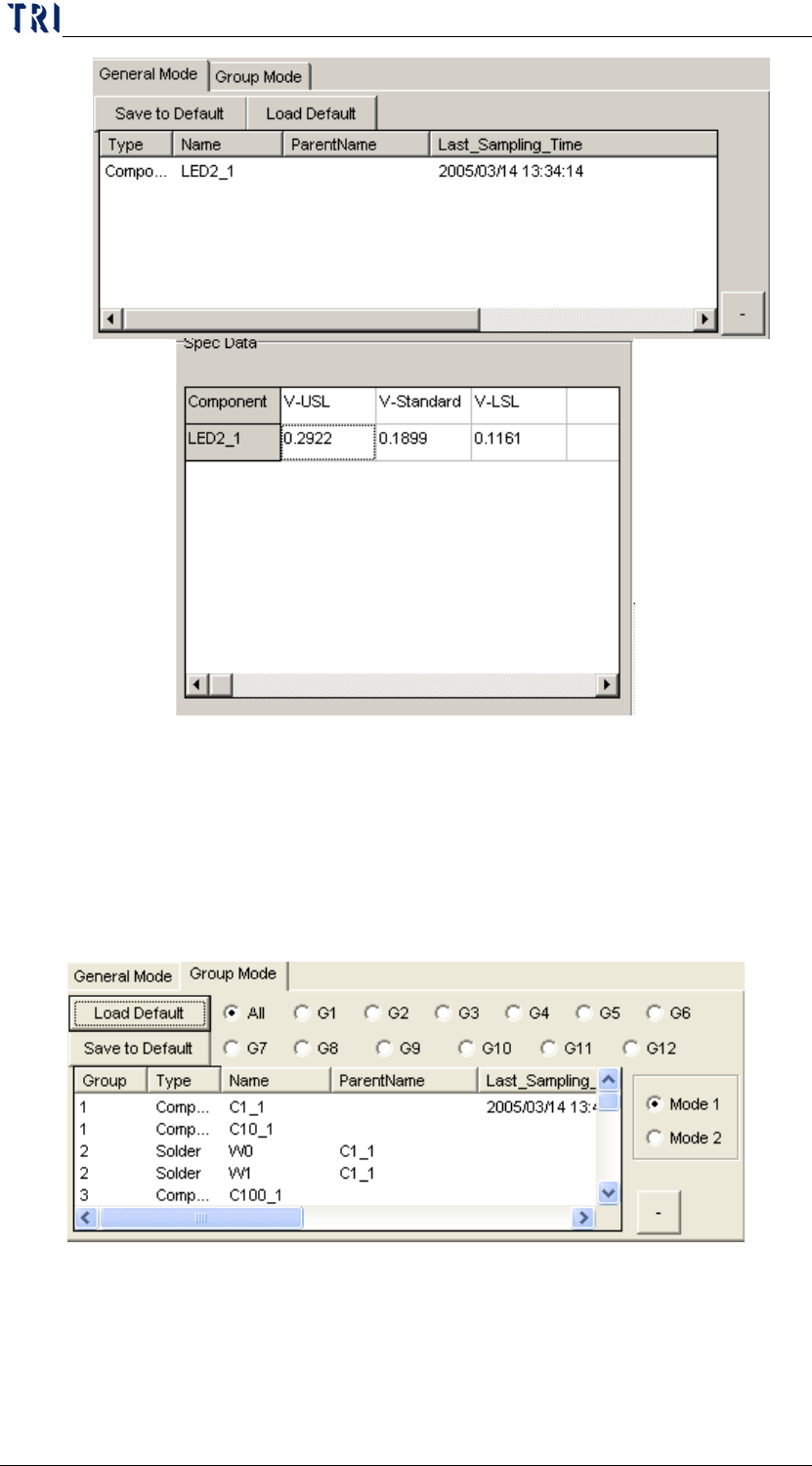 Group Mode: If you select the Group Mode, the displayed spec data is