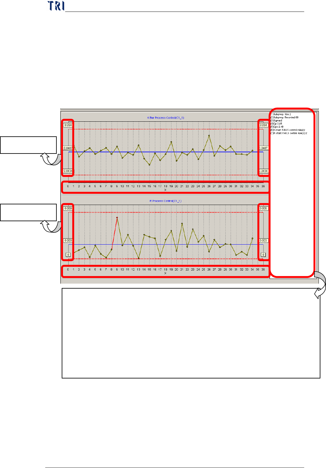 Description of the data on the right of the control chart: