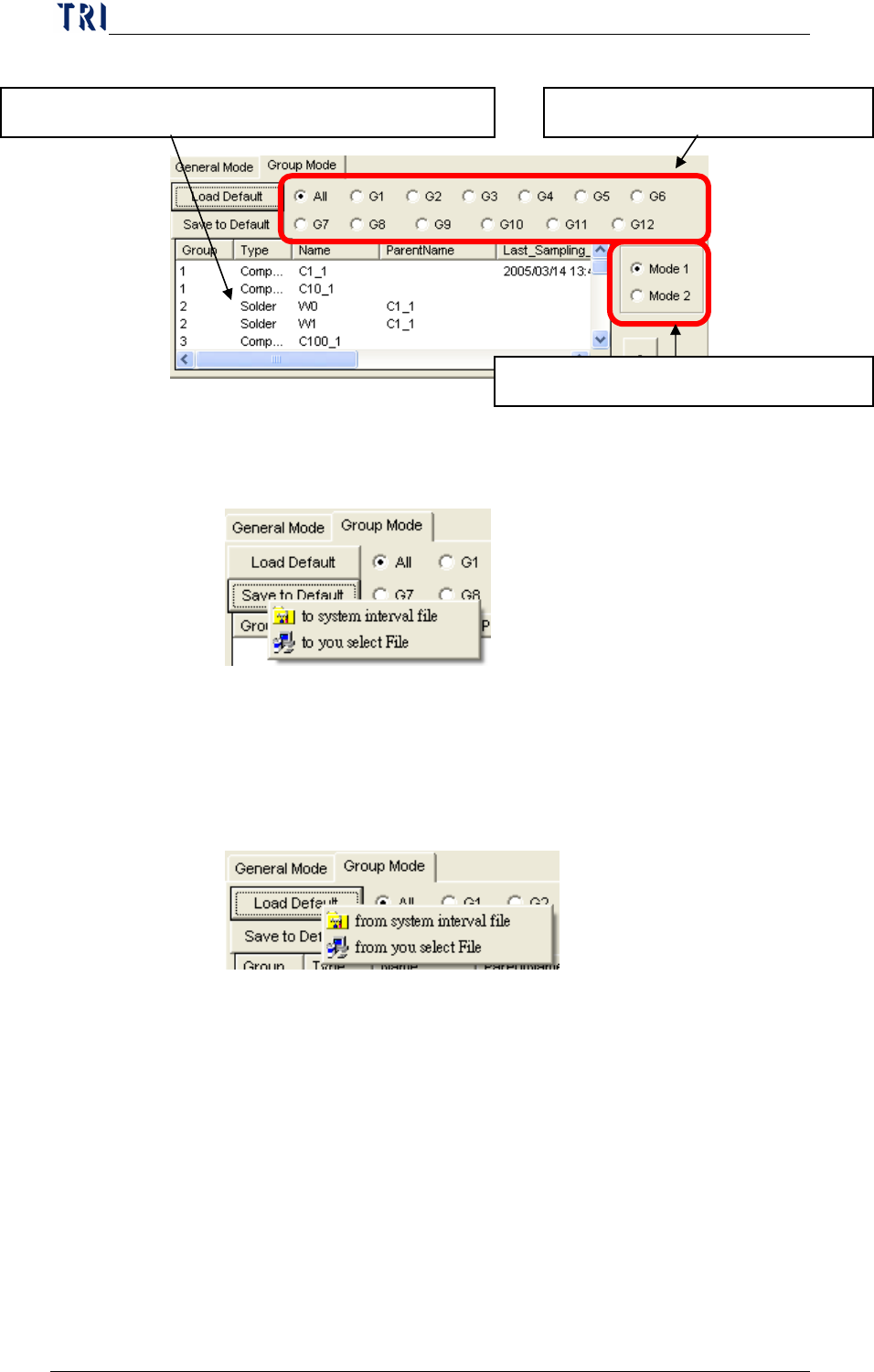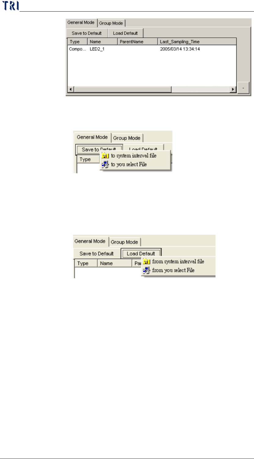 Chap ter3 SPC User Ma nual AOI Repair Station 126 Save to De fault: T o save t he current selection list as default for quick loading next time. There are two different way to save the list as default, ex plained below…