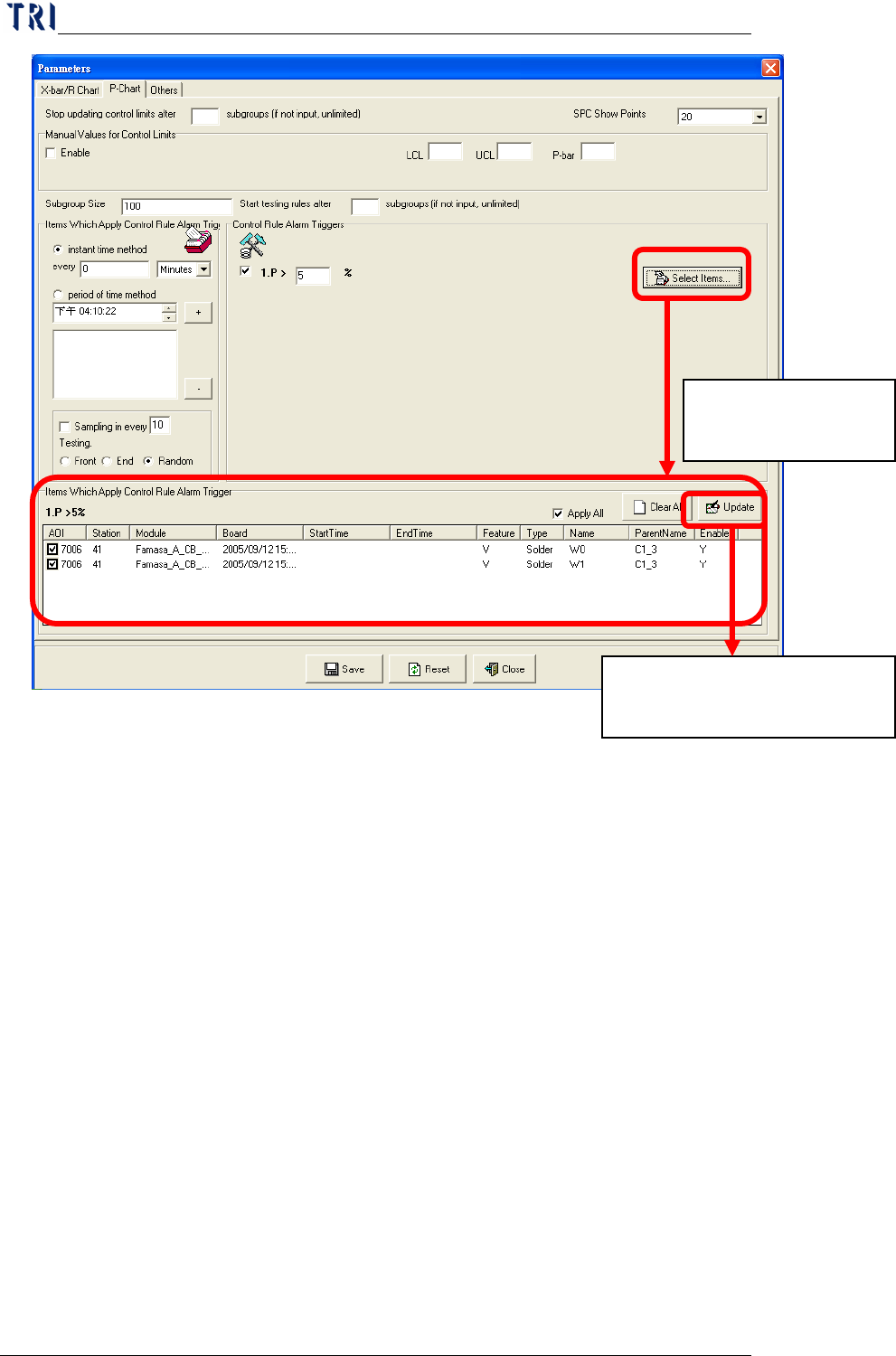 Chap ter3 SPC User Ma nual AOI Repair Station 134 The setting of the monitor item list here comes from the data selected by “Monitor Setup” under “Setti ng.” This does not include the components or solders selected in …