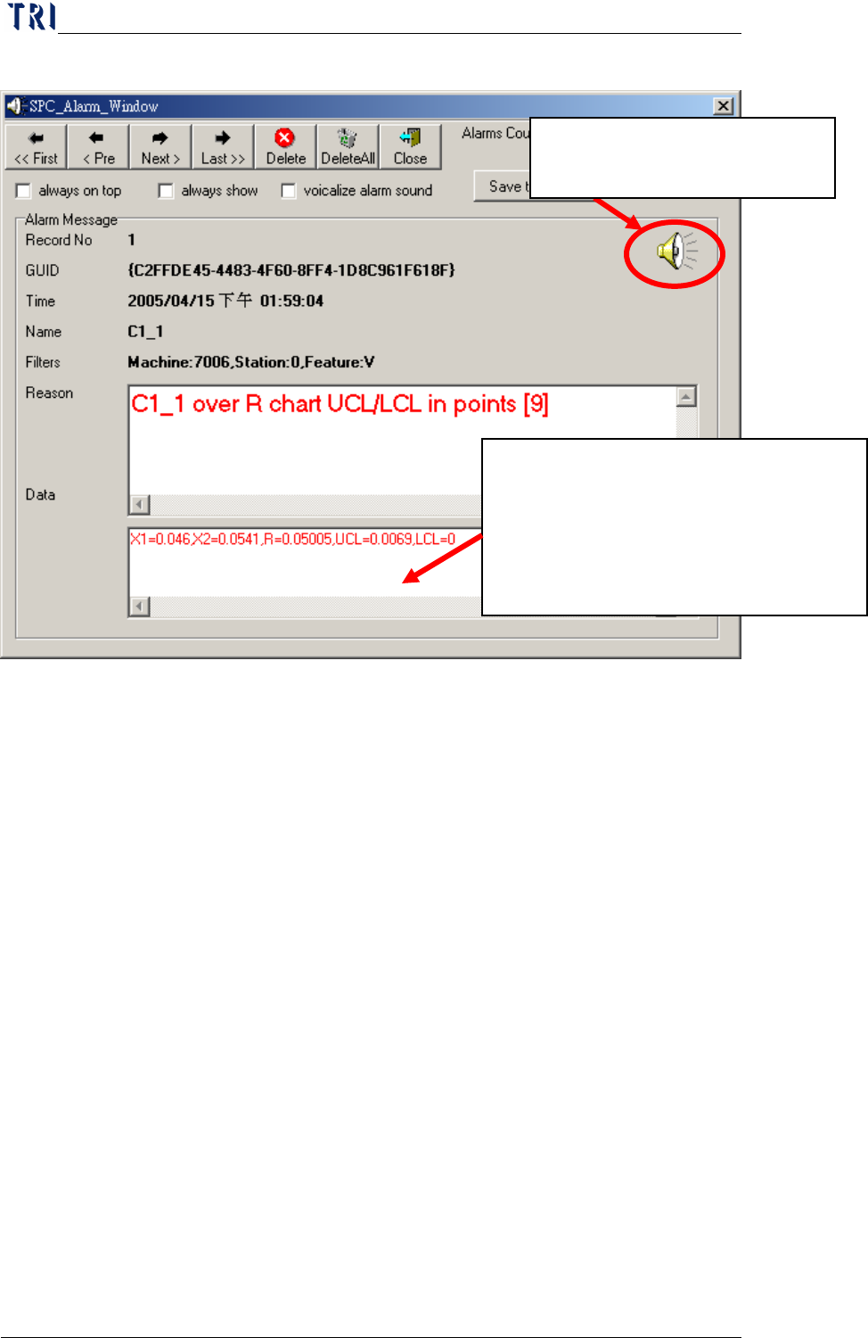Chap ter3 SPC User Ma nual AOI Repair Station 139 system will generate warning beeps when an error o ccurs. The “Save to Default” option indicates whether or not to save the “always on top”, “always shows” and “vocalize …