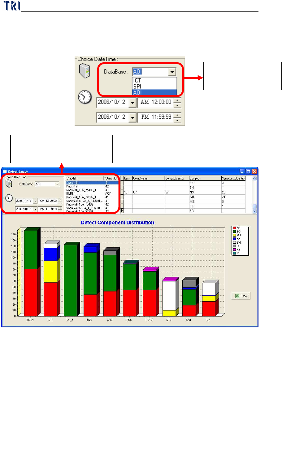 Chap ter3 SPC User Ma nual AOI Repair Station 154 Step1. As the following picture, select the database and Model first; doubl e click on the Cmodel data, then the s y stem will display the defect component data. The exis…