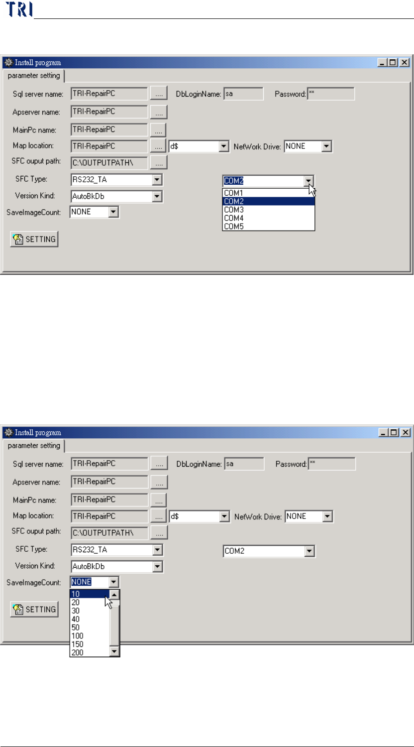 When you select [RS232_TA] at [SFC Type] field, it uses the RS232 as
