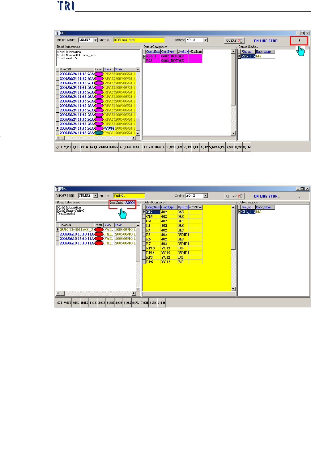 After user confirms a board as “Repair”, a defect cause window will