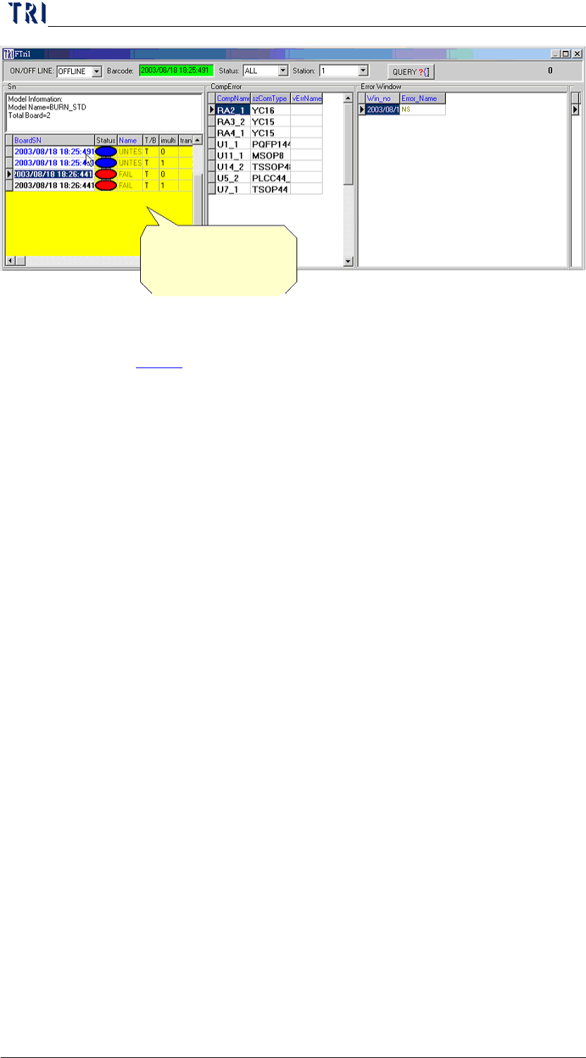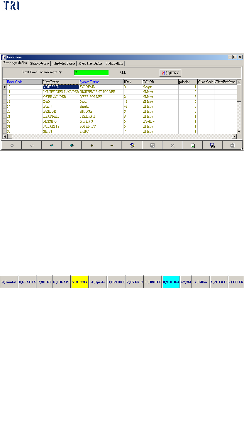 Chapter 2 Repair Station Main Progr am AOI Repair Station 44 7.1 Error T ype Define Y ou can adjust the color or text of the [Error Area] in C onfirm work frame. Procedure Step1. Press[QUER Y] Step2. Edit content E…