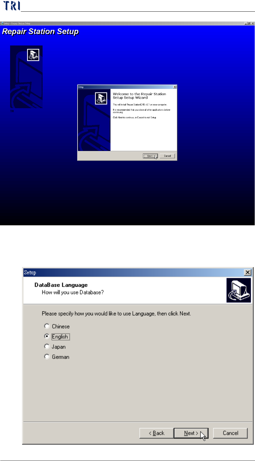 Chapter 1 Installation Pr ocess AOI Repair Station 2 Step2. Select a language. The language must be the same with th e operation system. The n press [Next] .