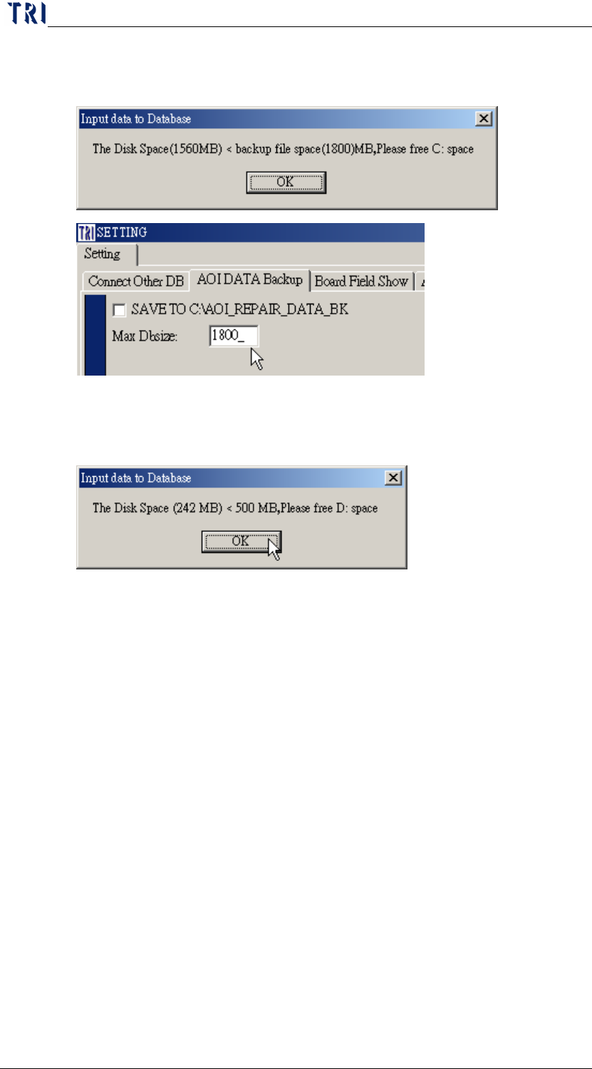 If the TRI database size is over 1800MB, execute [Clear Data/Empty