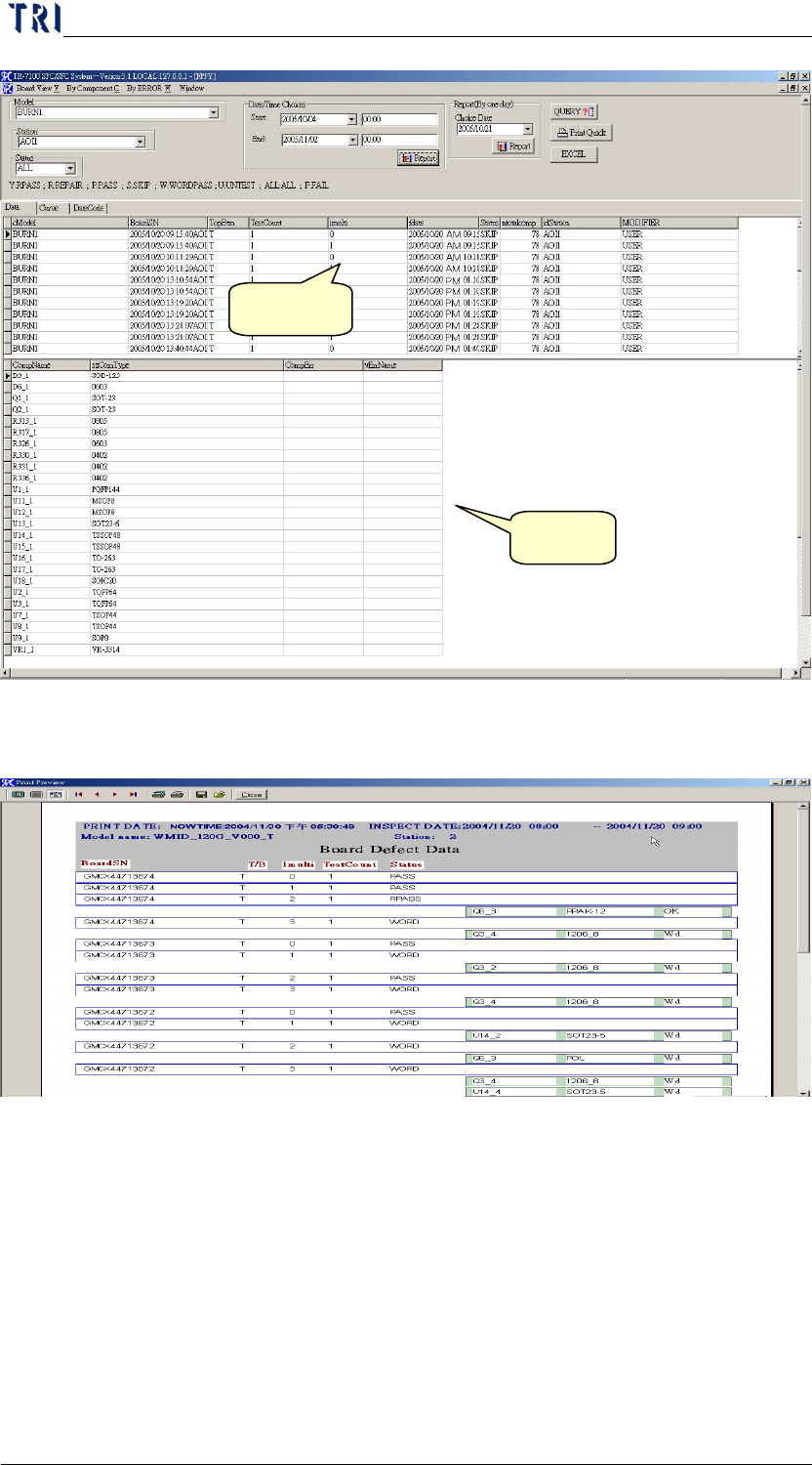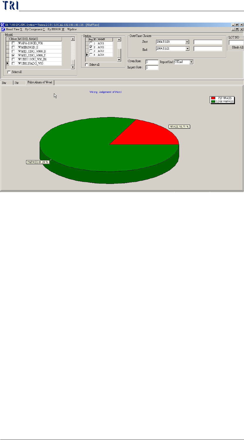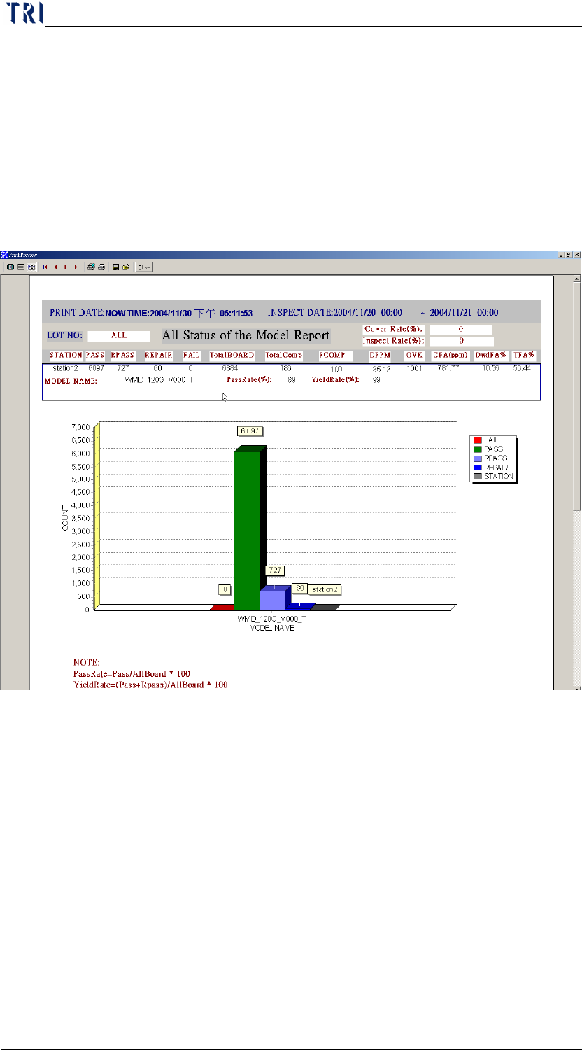 Chap ter3 SPC User Ma nual AOI Repair Station 89 as WDFail. It’ s eas y for user to calculate the defect rate ex cluding the WDF ail and user could get a better defect rate. PassRate=Pass/AllBoard*100 Y ieldRate=(Pas…