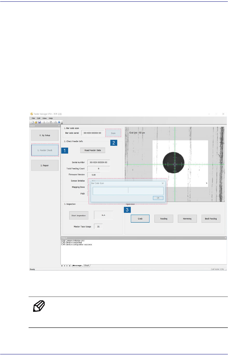 2. 在供料器检查画面单击<Scan>按钮实行条形码扫描窗。