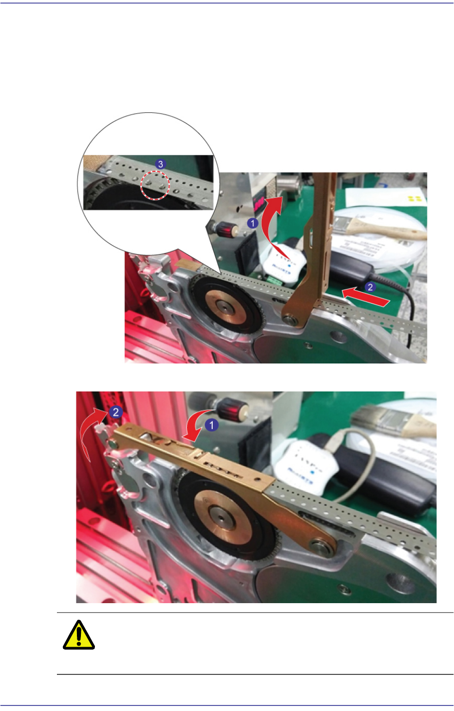 注 意 往下拉料带导件时,注意避免主料带的移送孔和链轮齿错开或者