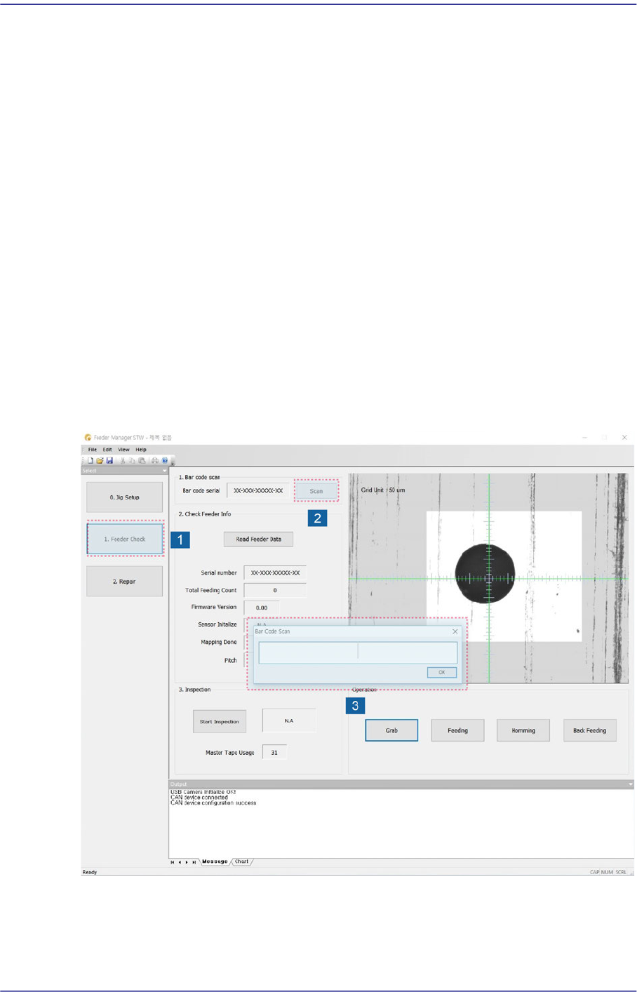 2. 在供料器检查画面单击<Scan>按钮实行条形码扫描窗。