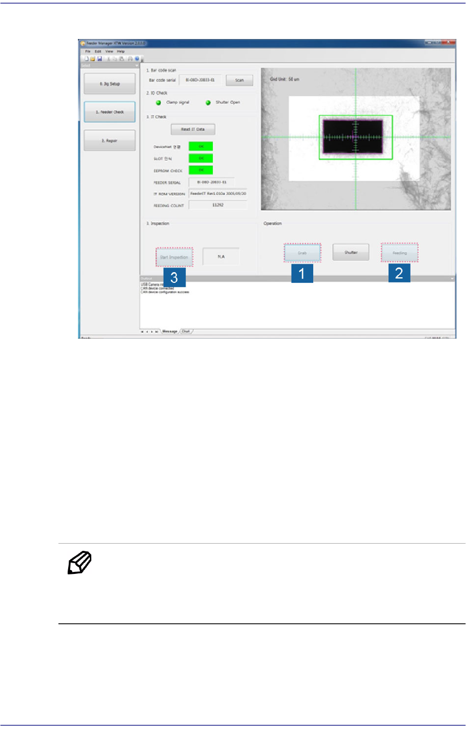 2) 请点击<Feeding>按钮,到检查开始位置,按照指定次数进行feeding。 (8mm