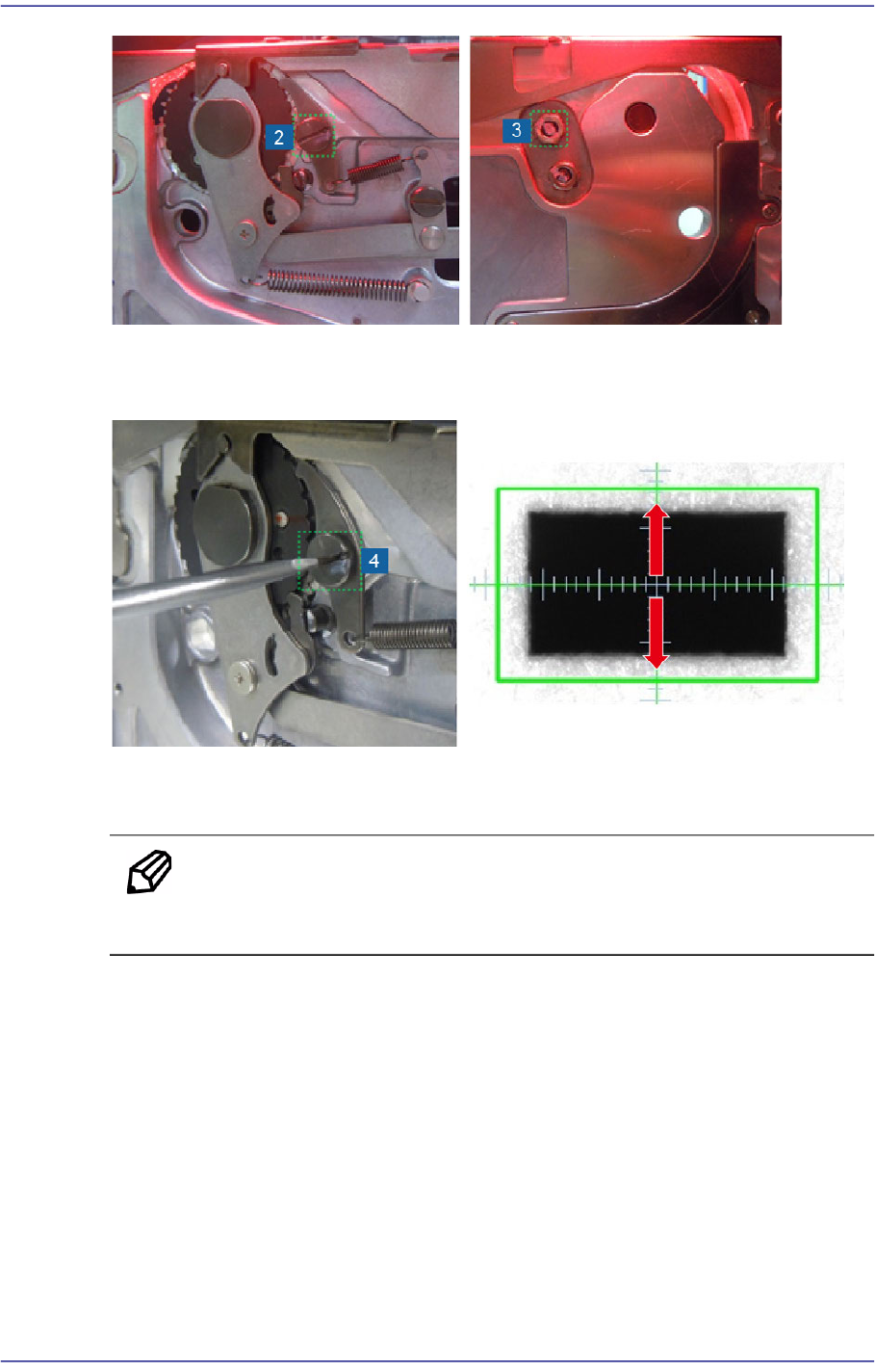 4-16 User's Guide For SME Feed er Calibration Jig 6. 用套筒螺丝刀锁紧相反方向的螺丝。 锁紧时, 注意 (- ) 螺丝刀不要动。 7. 双击 < S hutter> 按钮 , 移动到下一个 po c ket 后, 关闭带盖。 8. 请确认 pocket 是否按 Y 方向位于原点叉丝中央位置。 poc k et 位于 叉丝 中央位置 时, 请将 7~8 步骤重复 3…