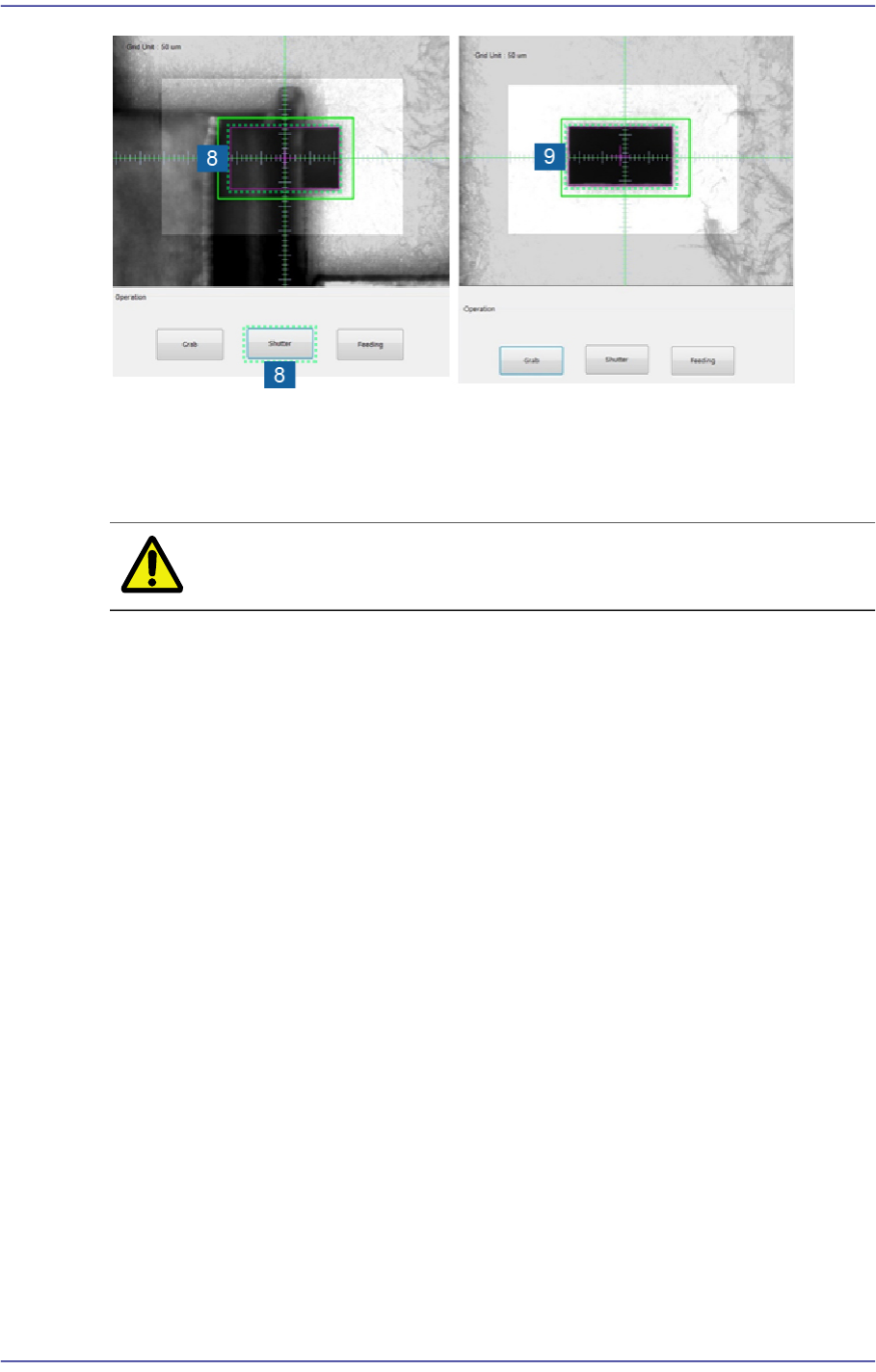 8. 在关闭带盖的状态下,用肉眼确认pocket的中心后,点击<Shutter>按钮。