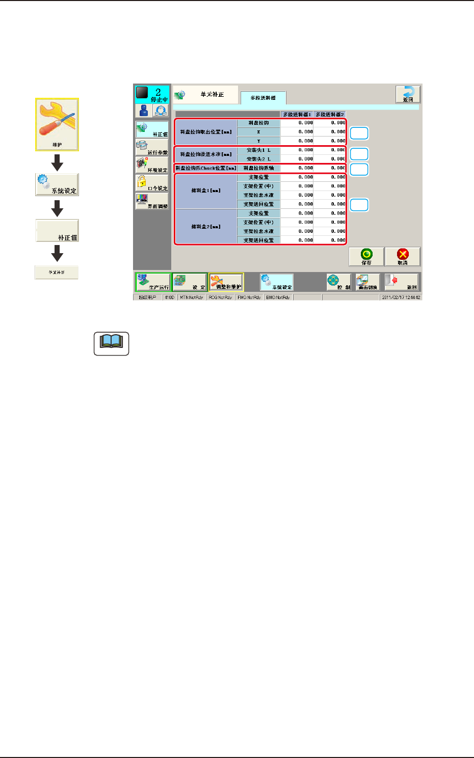 并且,拉出 / 返回水准的教示通过维护 / 单元交换 / 多段供料器安装步