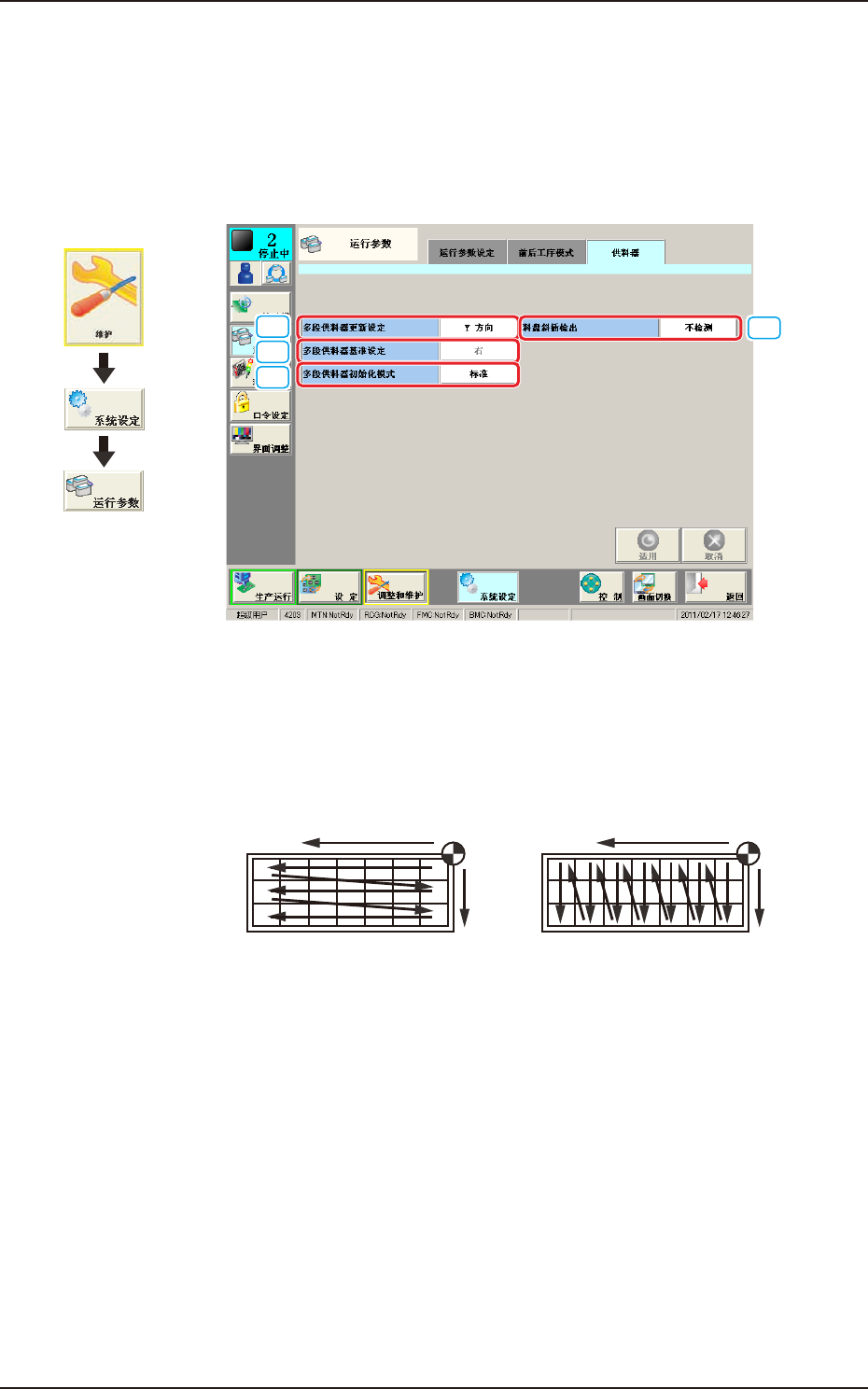 并且,拉出 / 返回水准的教示通过维护 / 单元交换 / 多段供料器安装步