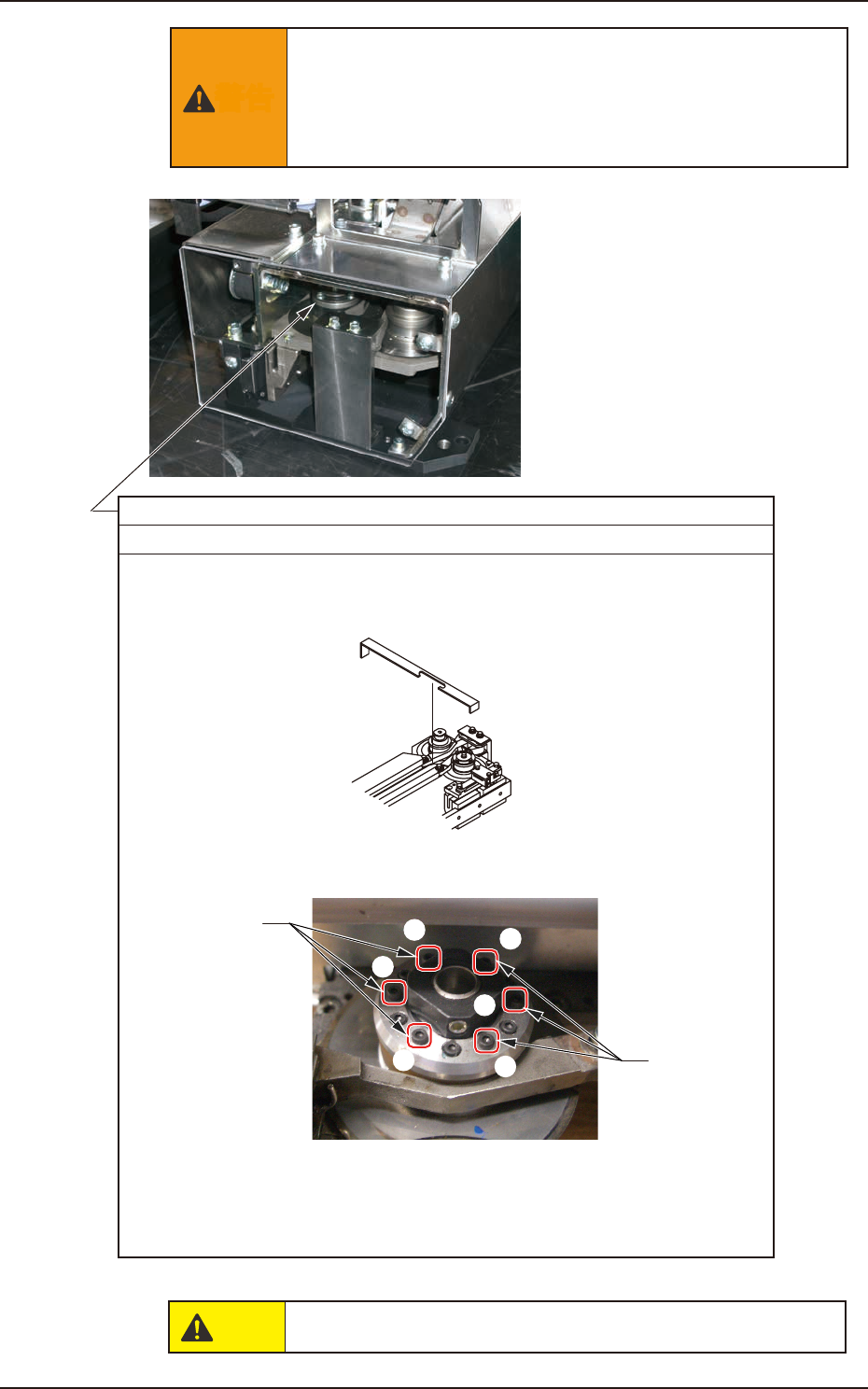 为防护起见,进行切割器部维护保养时,安装切割器刀片盖。